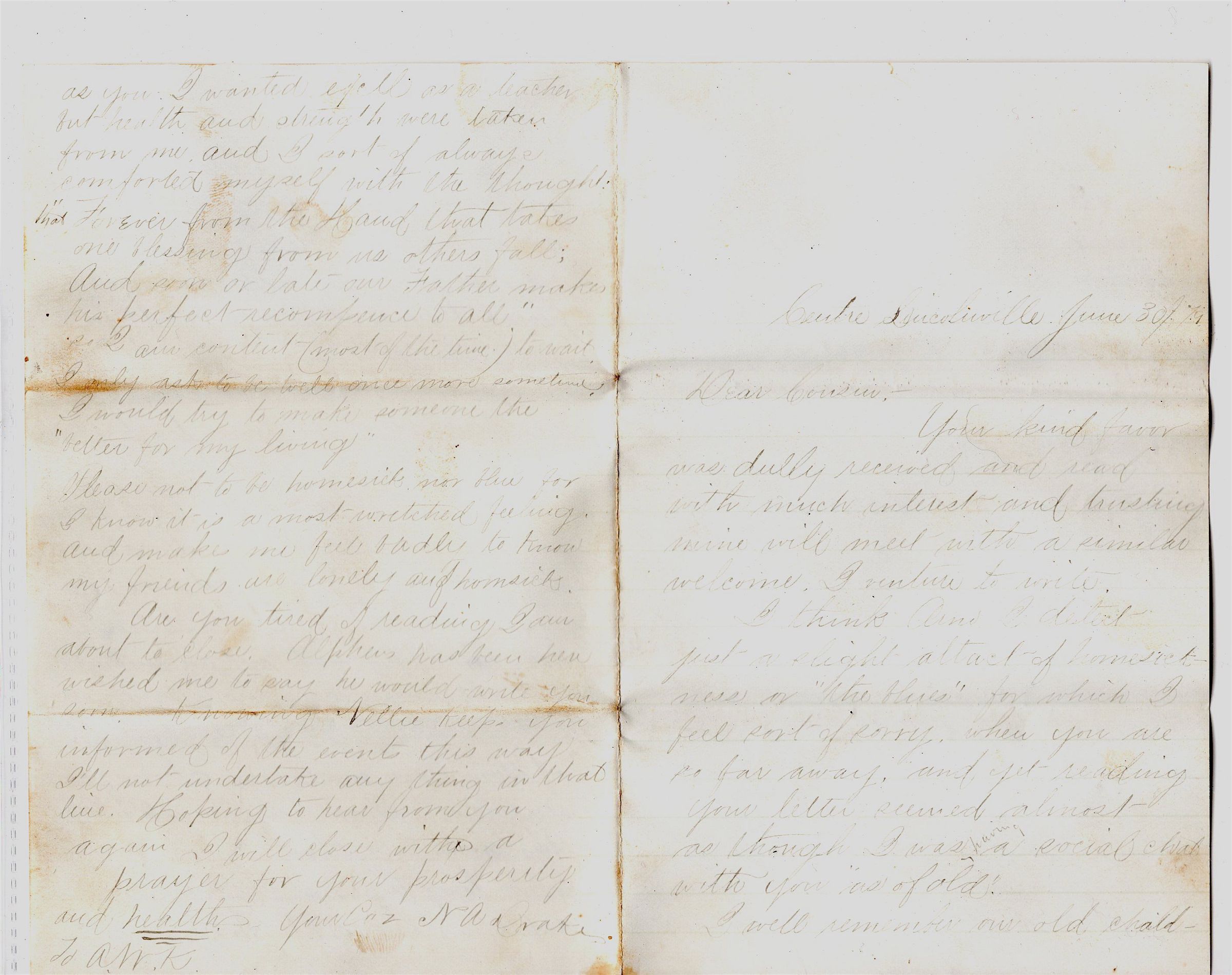 Knight Collection 1879 Letter; Dated June 30th; Written by Nancie Drake to her cousin Arno KnightRelationships