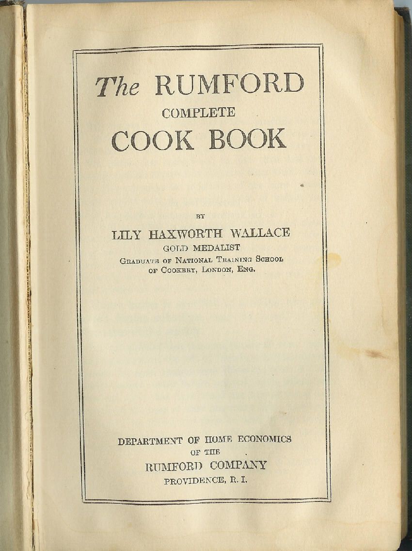 Comprehensive cookbook published by the Rumford Chemical Works, makers of Rumford Baking Powder