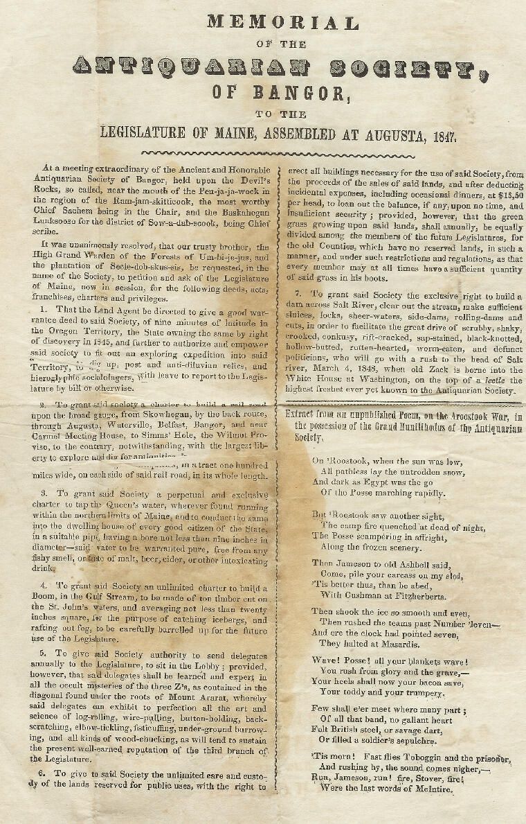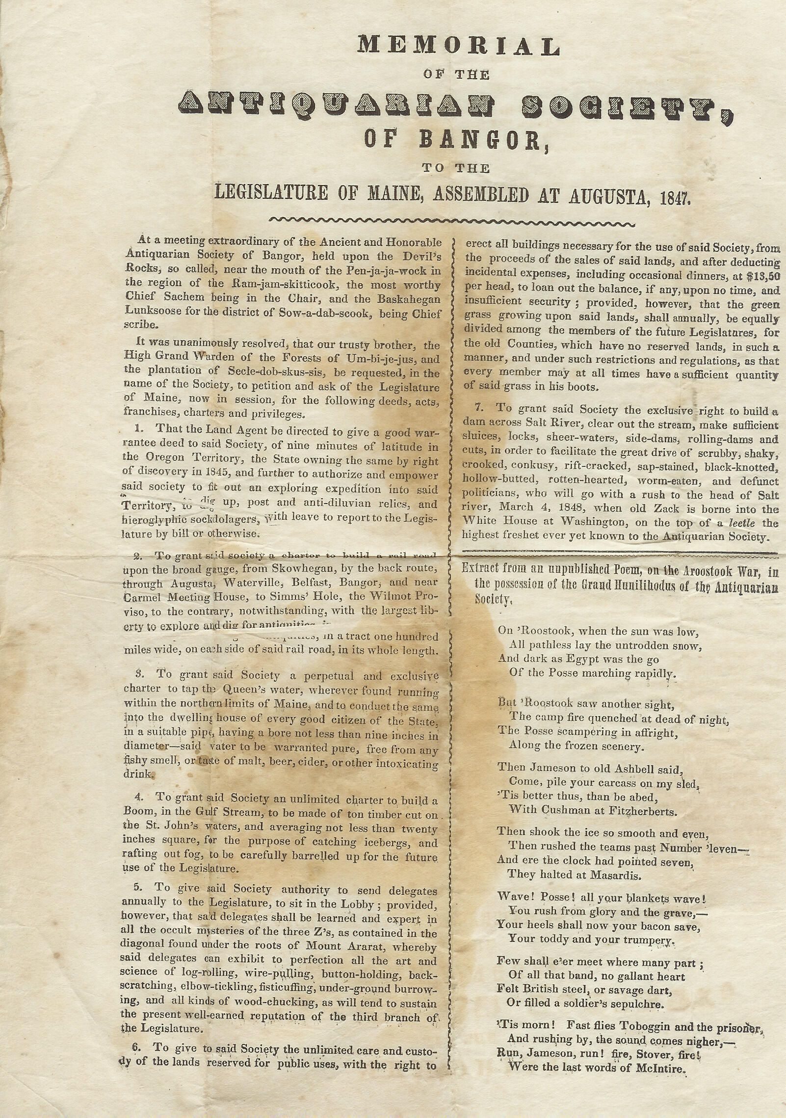 Memorial of the Antiquarian Society of Bangor, Maine to the Legislature of Maine, Assembled at Augusta, 1847