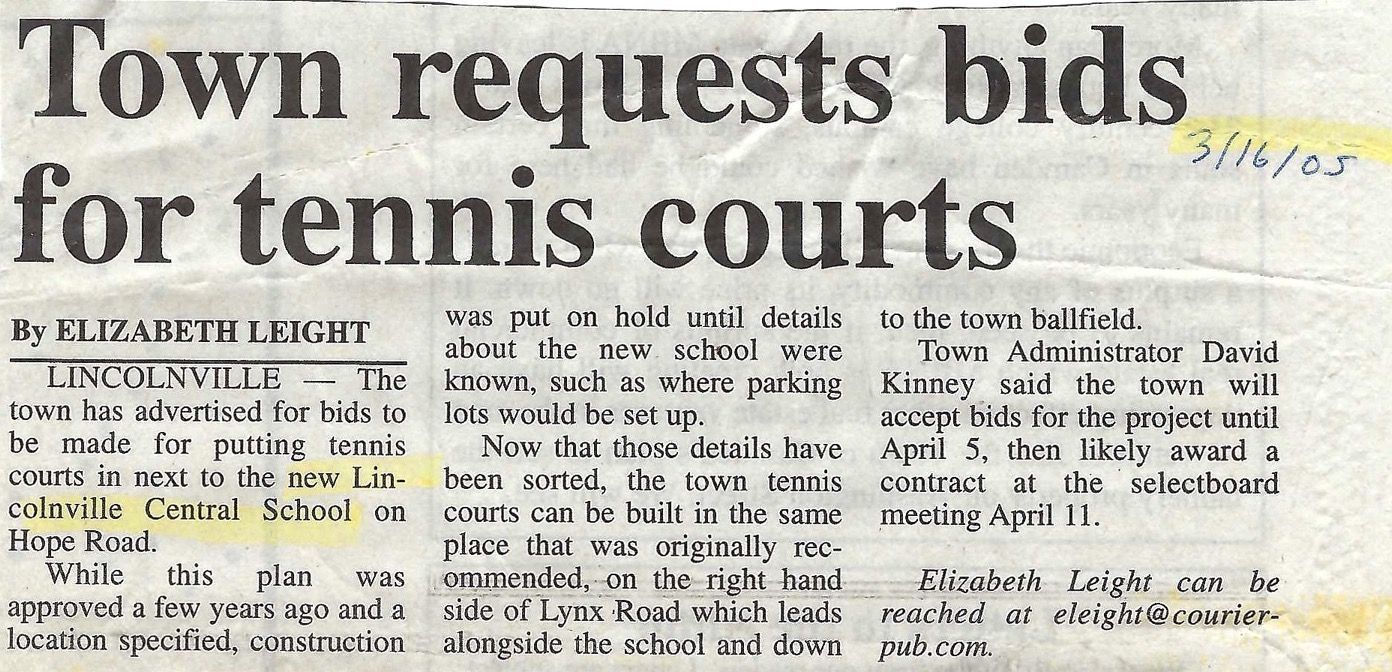 March 16, 2005 seeking bids for tennis courts at school