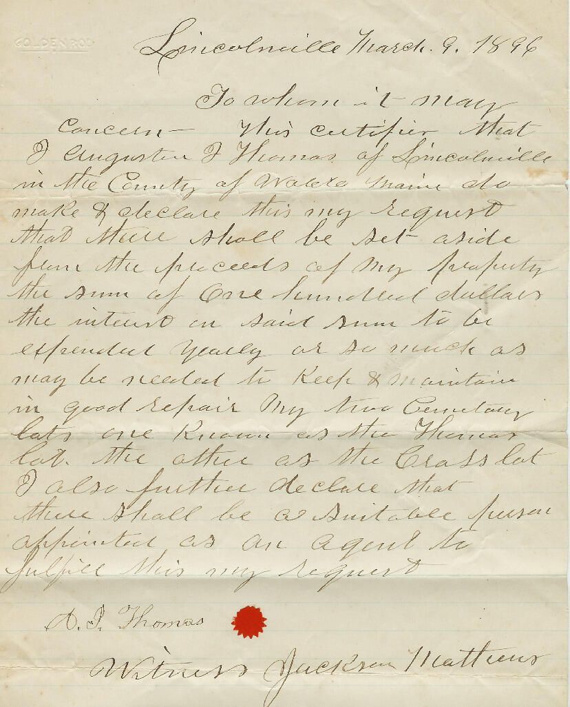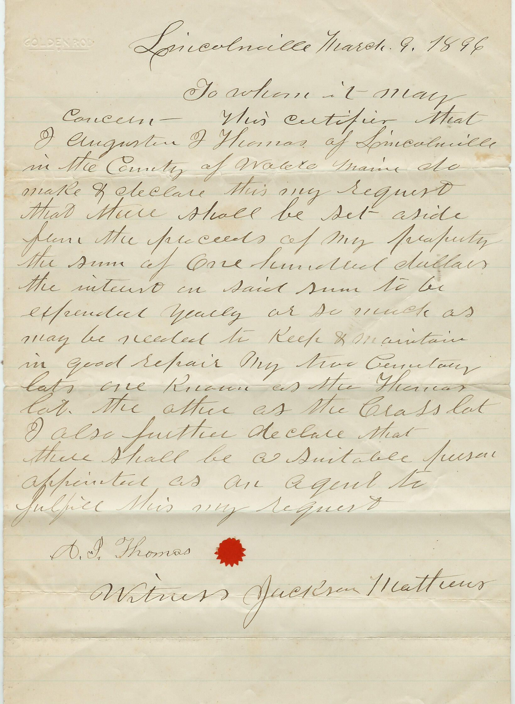 Augustus Thomas' cemetery maintenance contract.Relationships