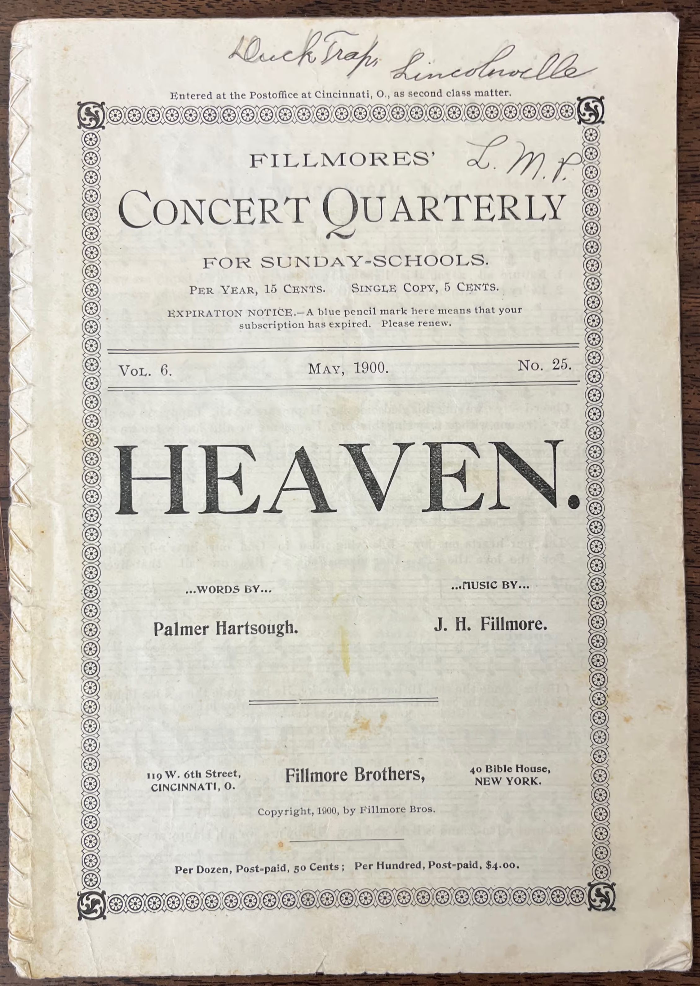 Fillmores' Concert Quarterly for Sunday-Schools