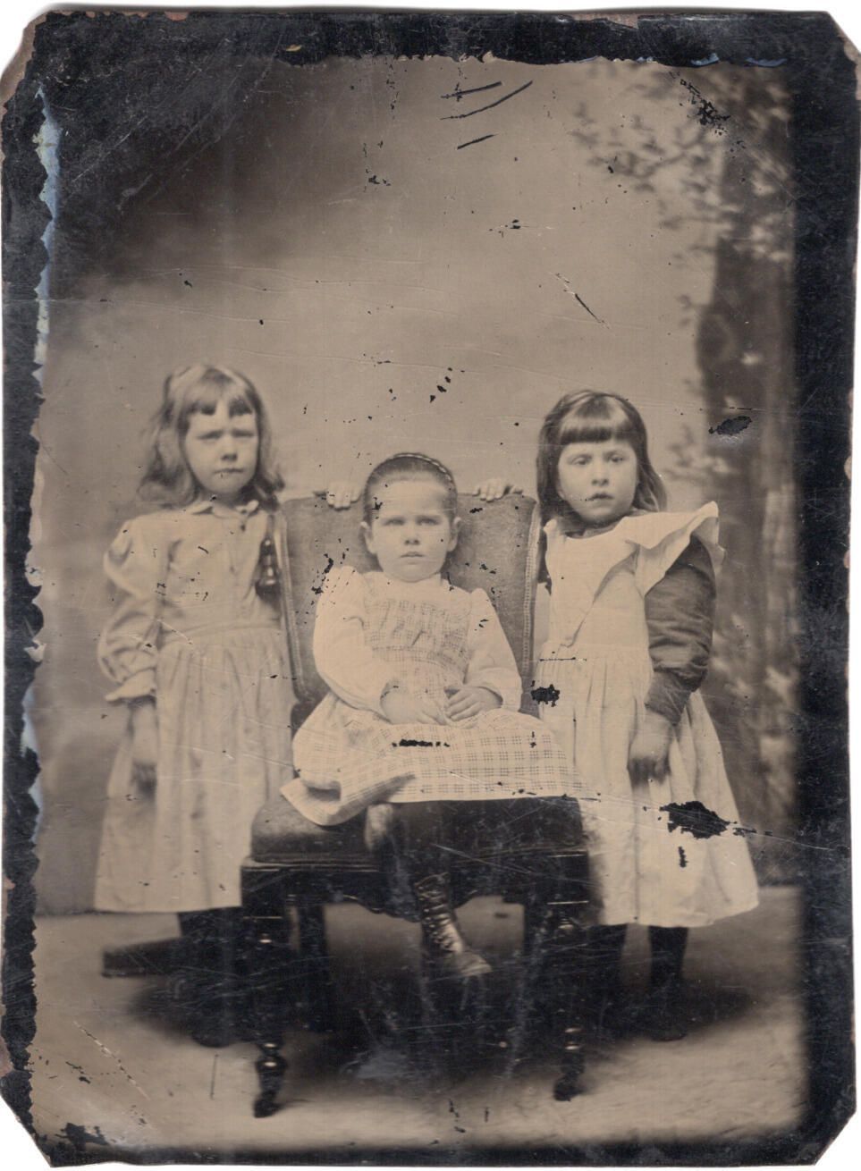 6 tintypes, unidentified 2 of a single man 1 of two young men two apparent family groups 1 of three little girls