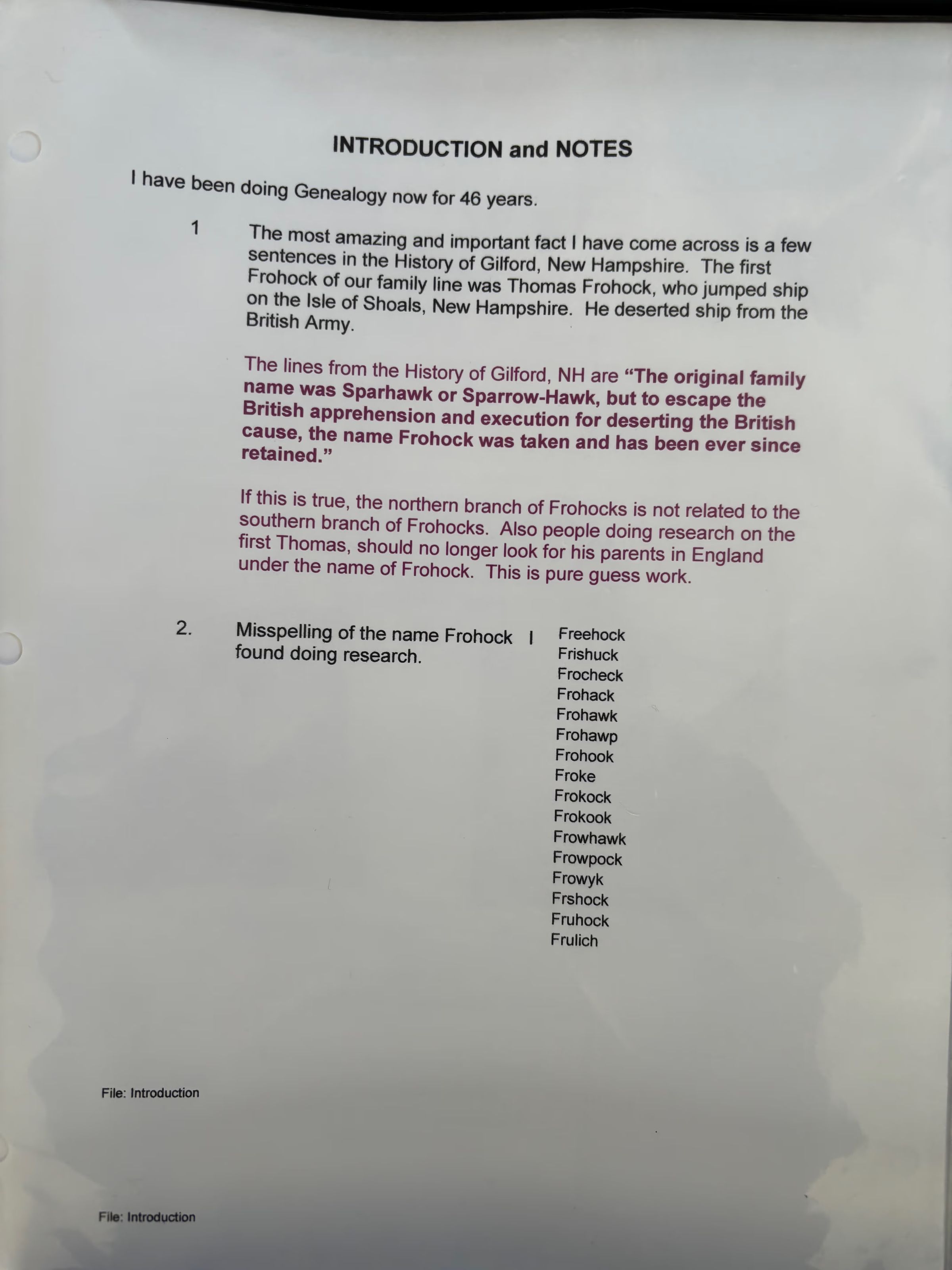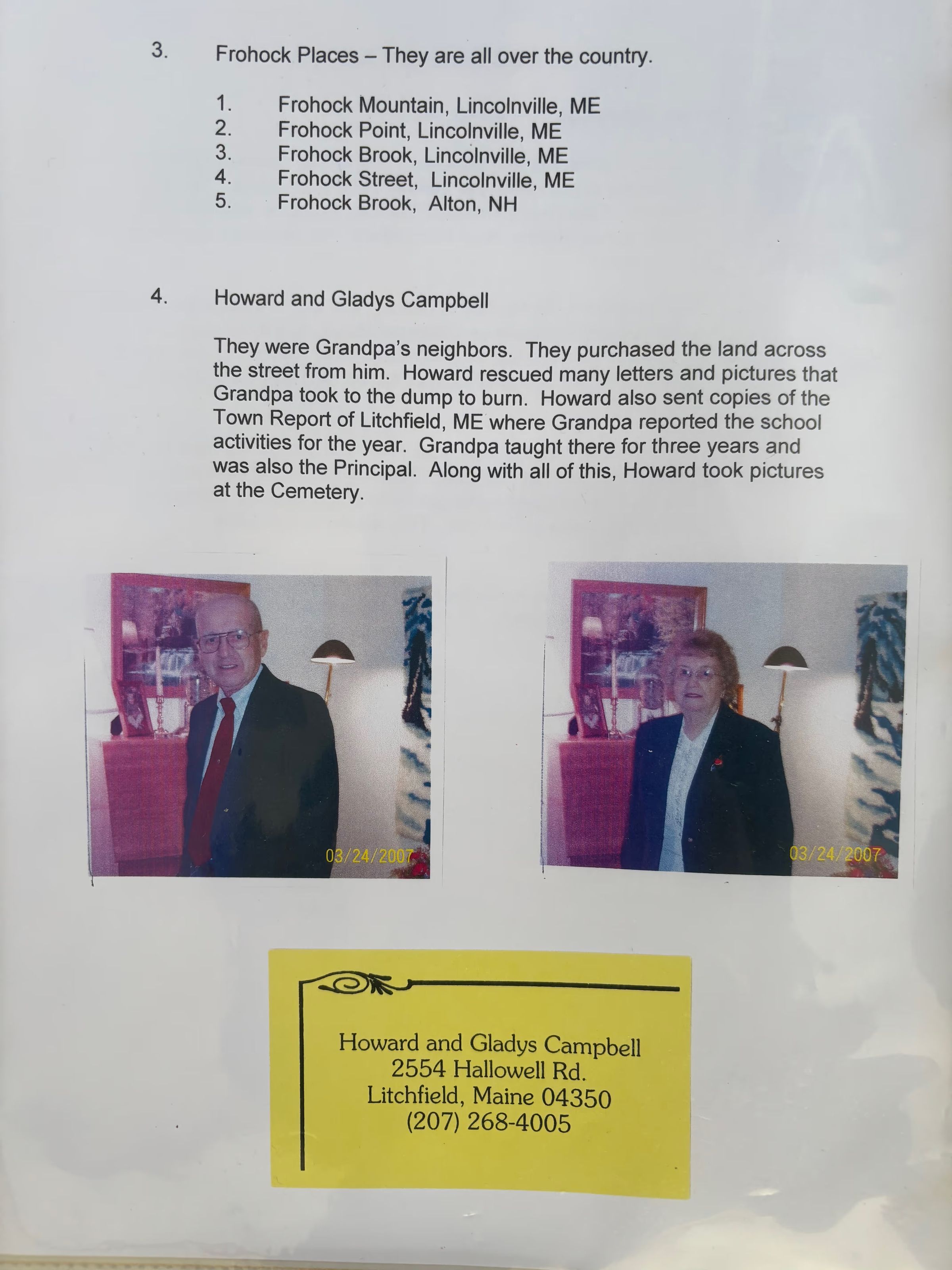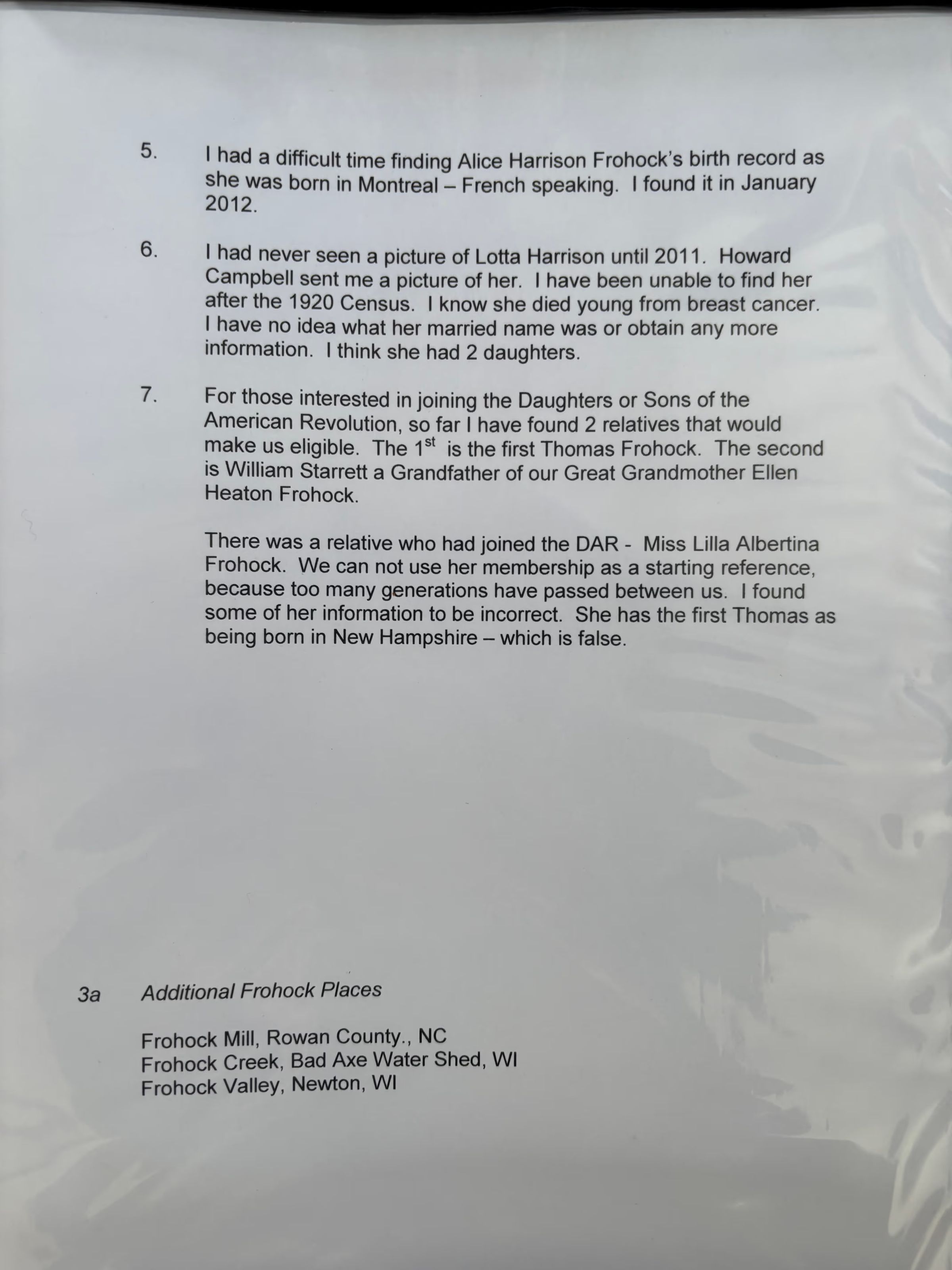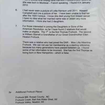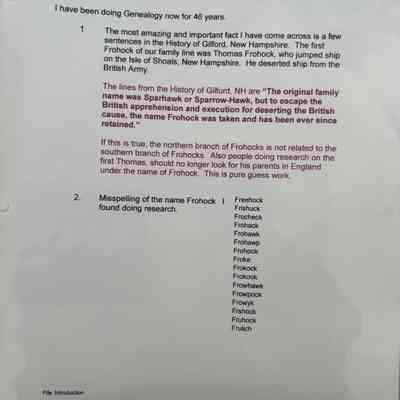 Binder of Frohock History, Info on Places named for the Frohocks in LincolnvilleRelationships