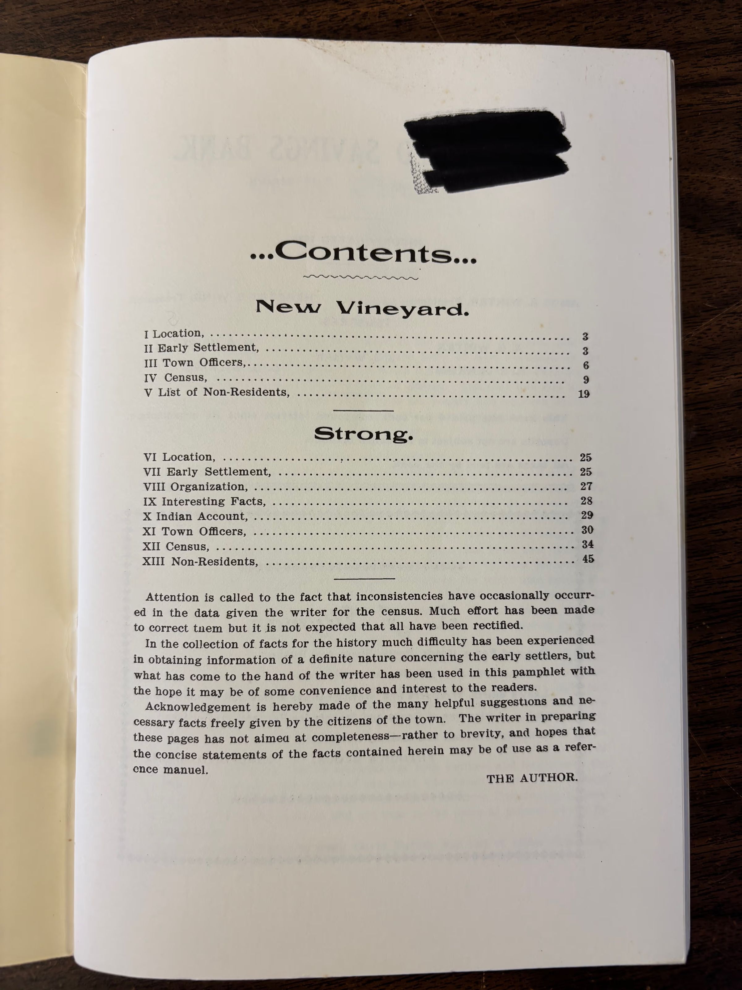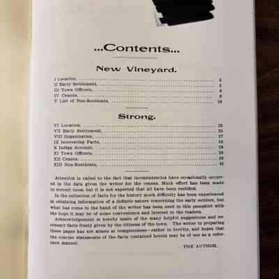 History and census of New Vineyard and Strong, Maine. Soft cover book with approx. 50 pages.