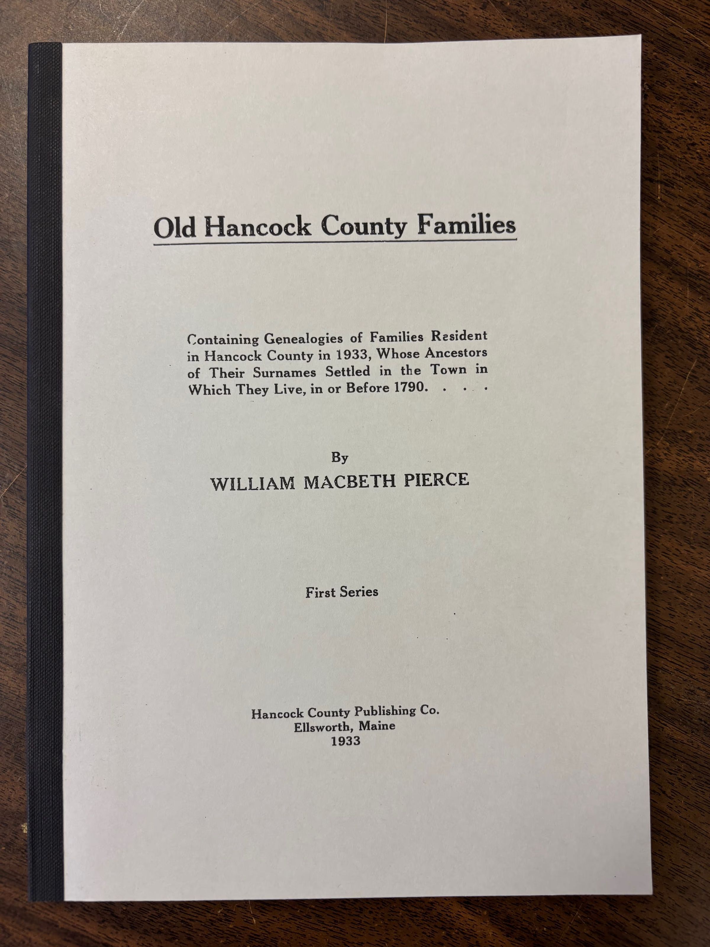 Containing Genealogies of Families Resident in Hancock County in 1933