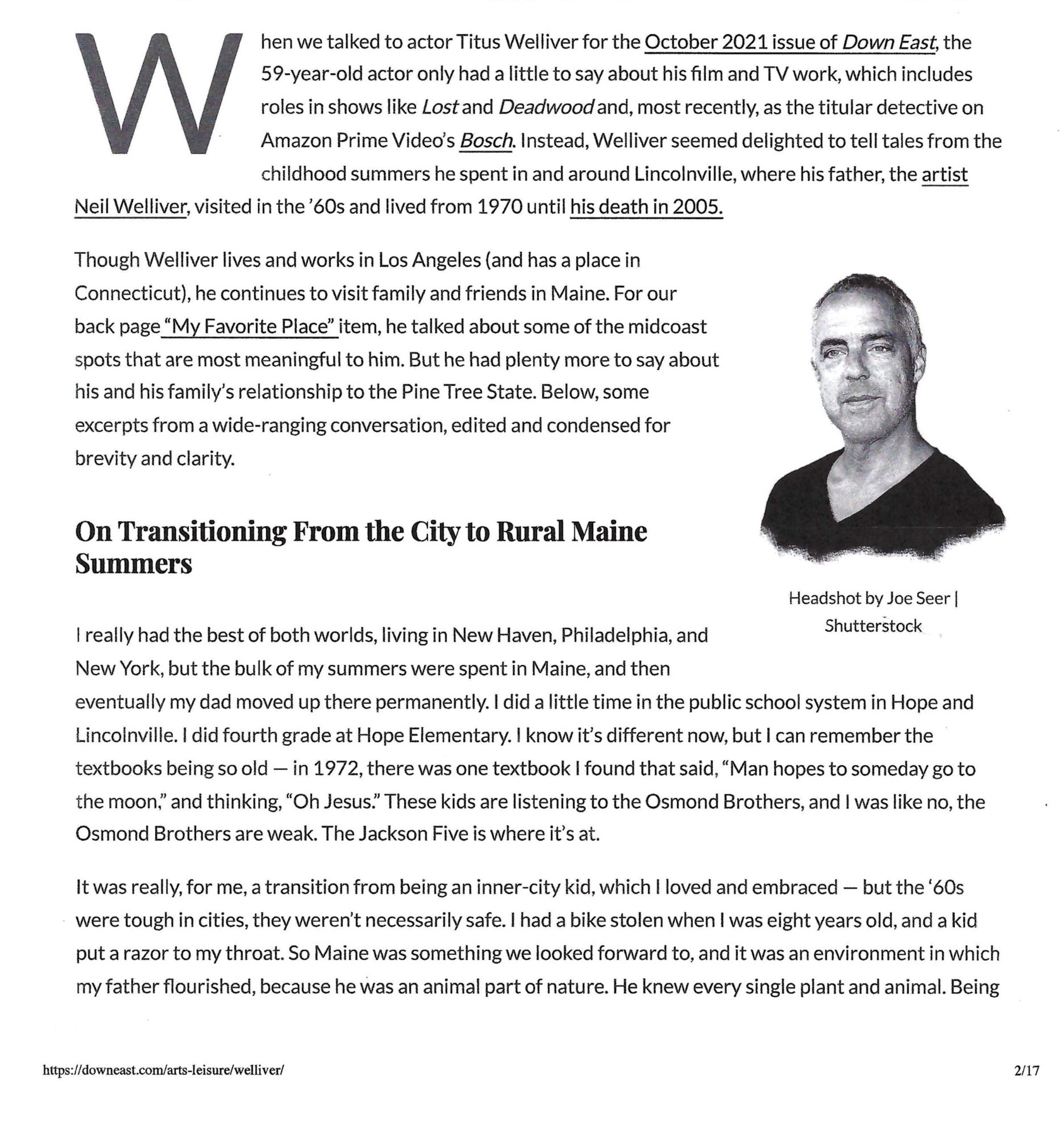 interview with Titus We;lliver for Downeasst Magazine, October 2021