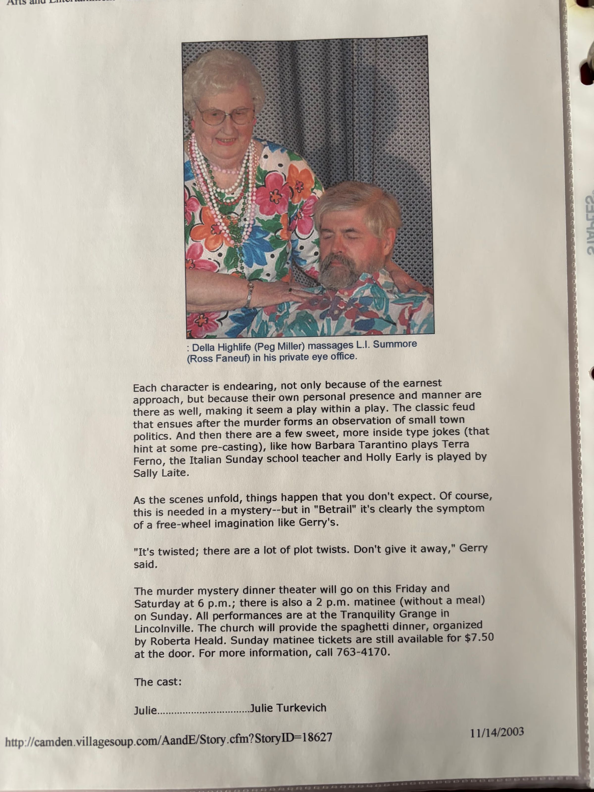 printouts from villagesoup.com of articles pertaining to LincolnvilleRelationships