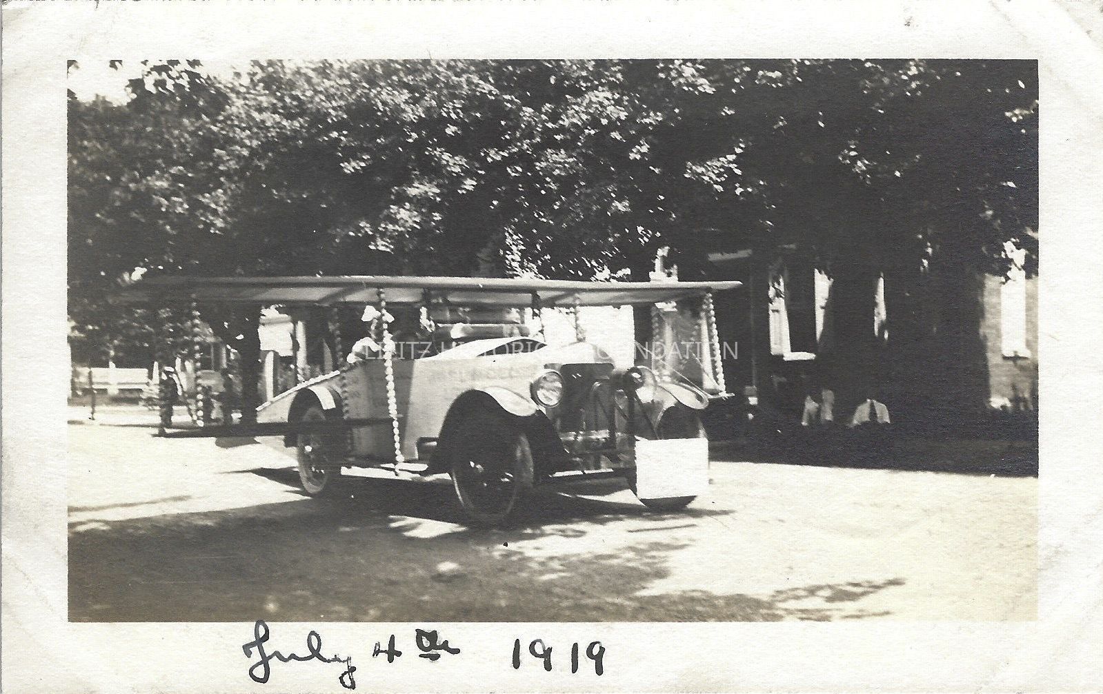 A set of three photographs from the Fourth of July parade in Lititz, 1919. Each photograph has the same inscription of the front.The car/airplane (aka The Road-O-Plane) was created by automobile dealer John LongeneckerPhotograph Details