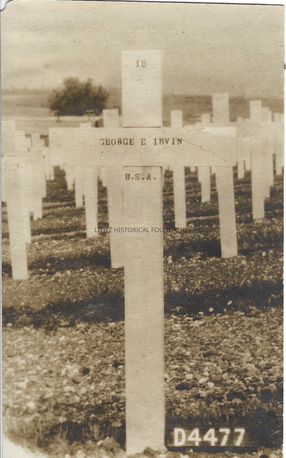 Photograph of George Irvin's gravesite in France. The American Red Cross sent this photograph to Lida.Photograph Details