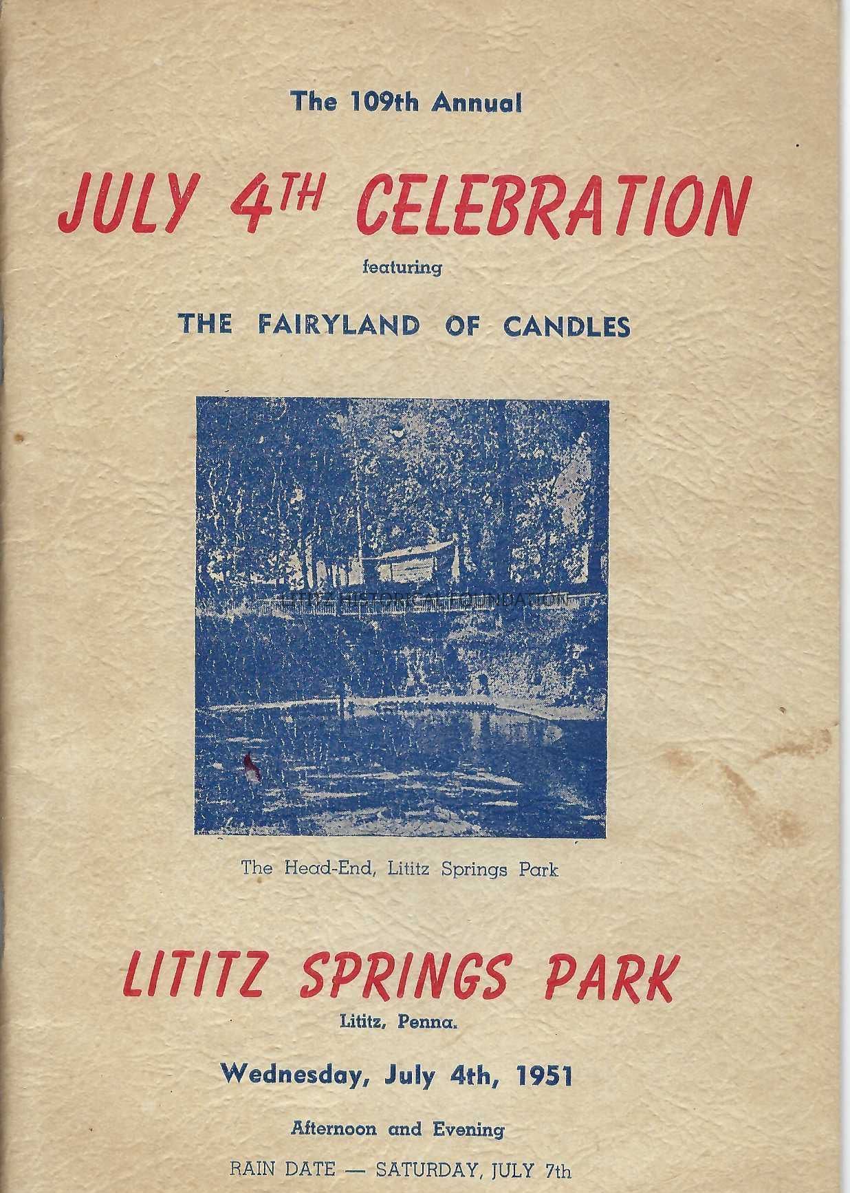 Program for the afternoon and evening events for the Lititz Fourth of July Celebration, Lititz Springs Park, Lititz, PACollection