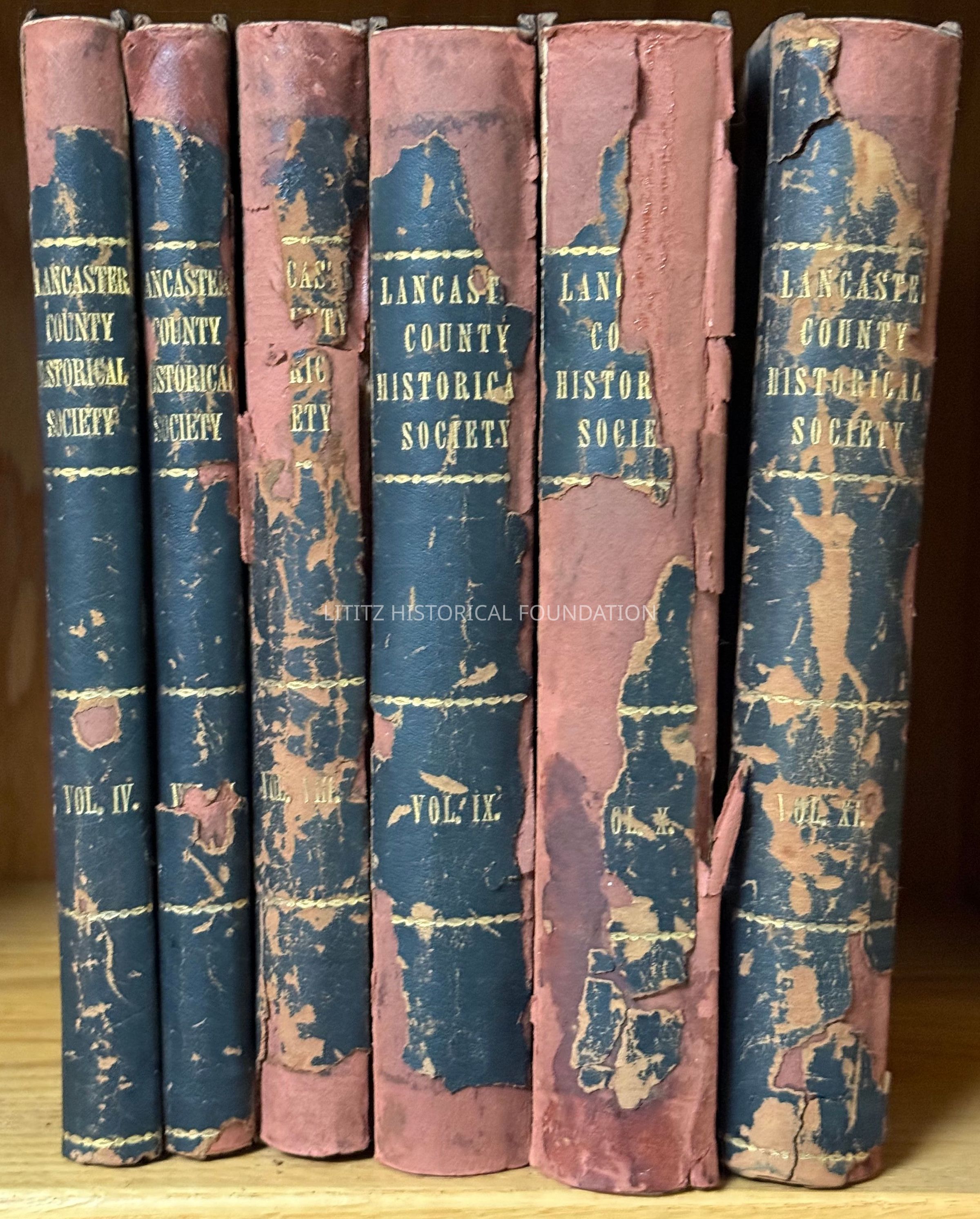 Six bound volumes of the papers of the Lancaster Historical, 1899-1907. This set includes Volumes IV, V, VIII, IX, X, XICollection