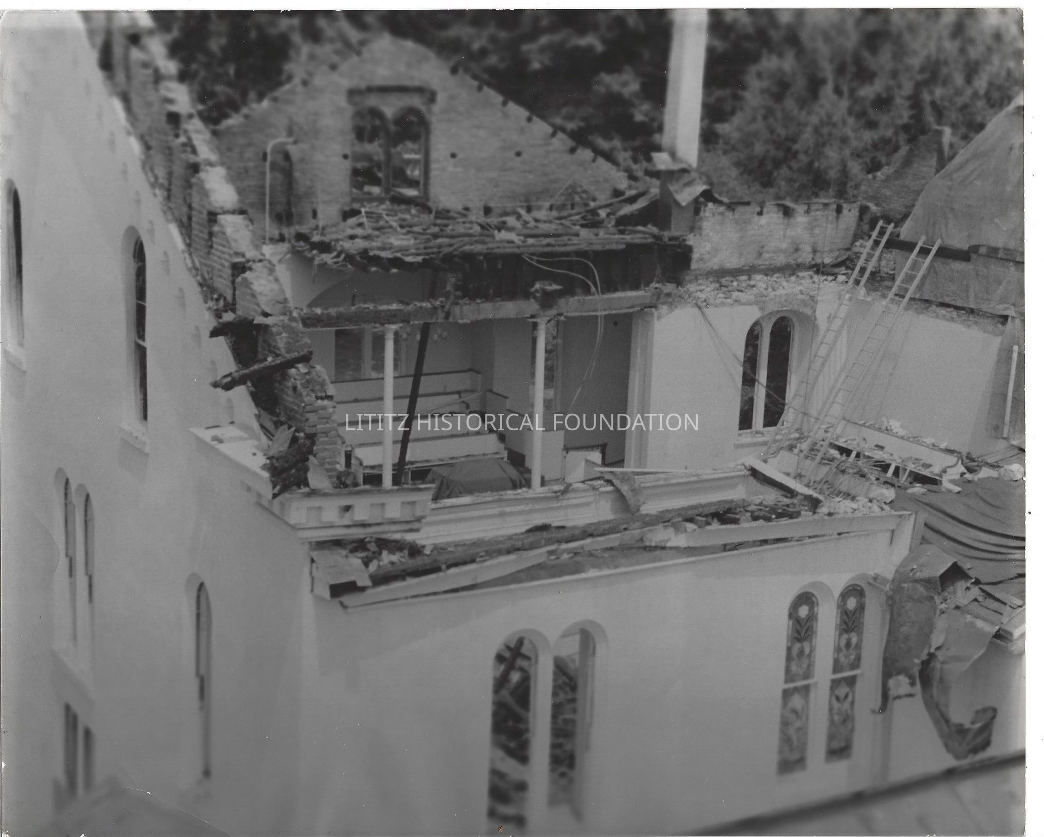 Two photographs from the Lititz Moravian Church Fire, July 2 1957Photograph Details