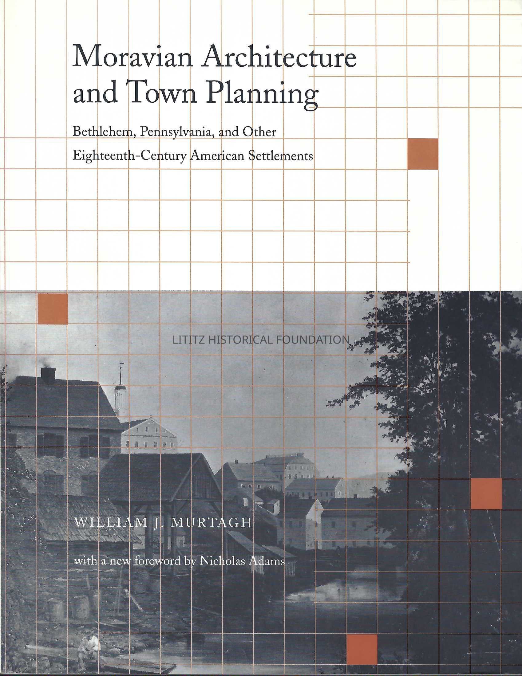 Murtagh's book explores the how Moravian customs and culture influenced the style of buildings and the arrangement of their towns. Much of the book is devoted to Bethlehem. There are shorter examinations of Moravian settlements in Pennsylvania, New Jersey, and North Carolina.Dimensions