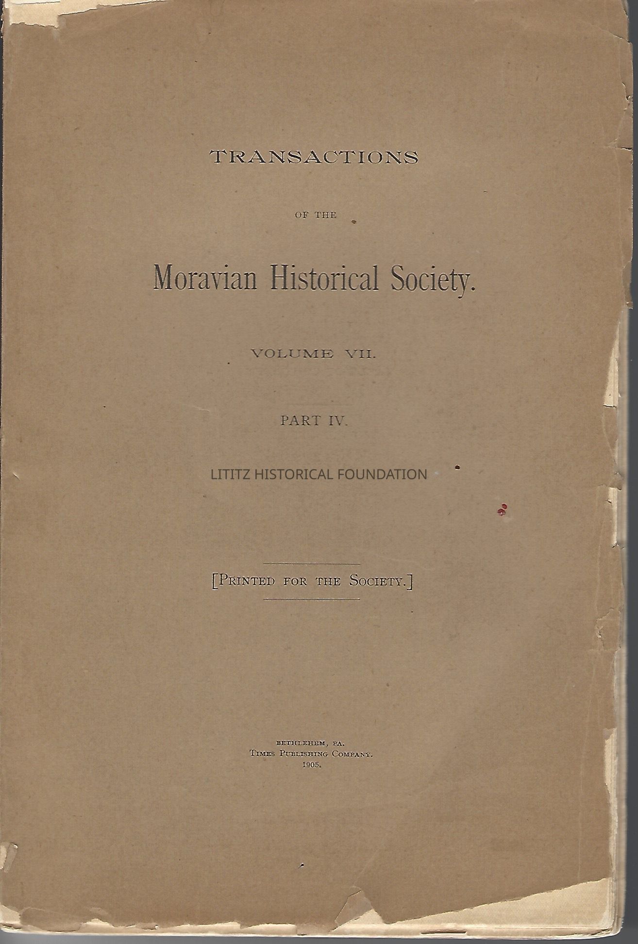 Moravian Historical SocietyVolume/Number/Issue