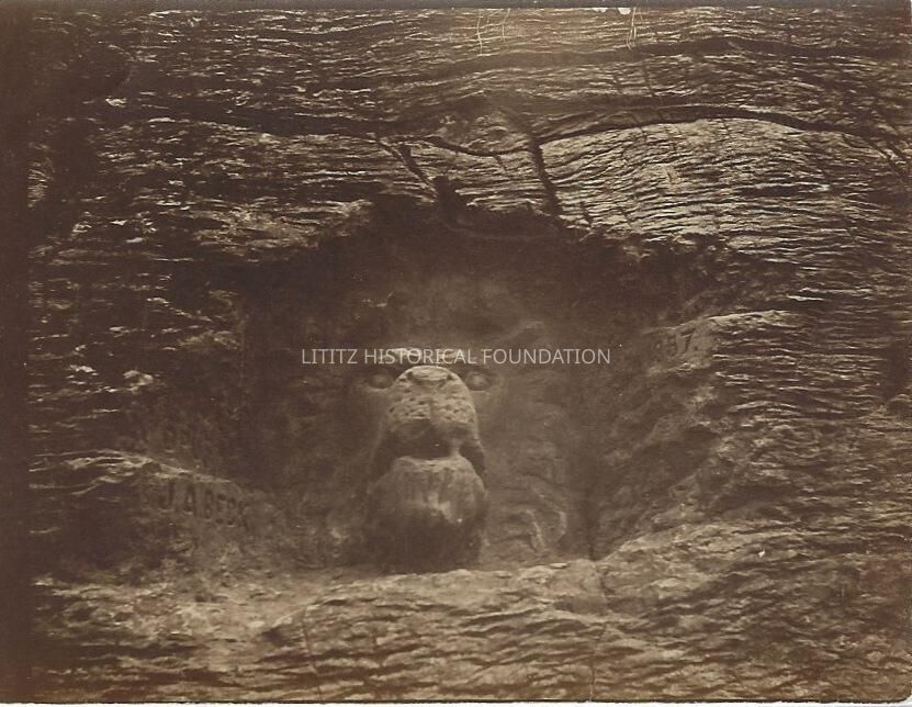 Photograph of the Lion Head sculpture in LItitz Springs Park, taken by John FassEntry/Object ID