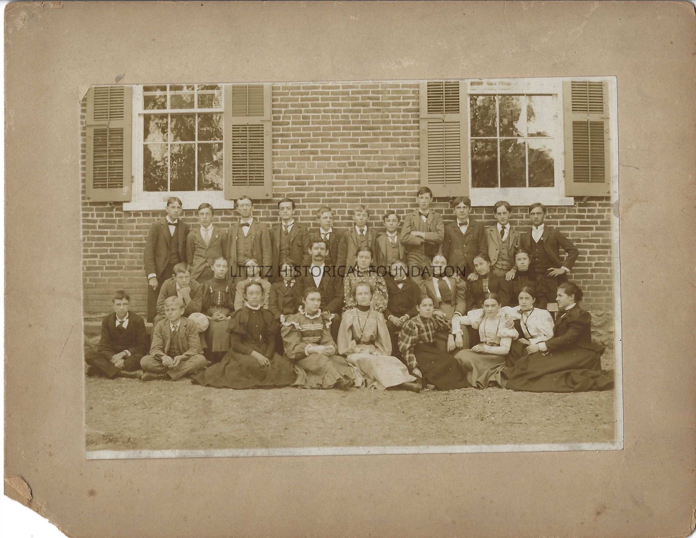 School photograph. Inscription on reverse identifies one student as Mary Huebner, '98 & '99Photograph Details