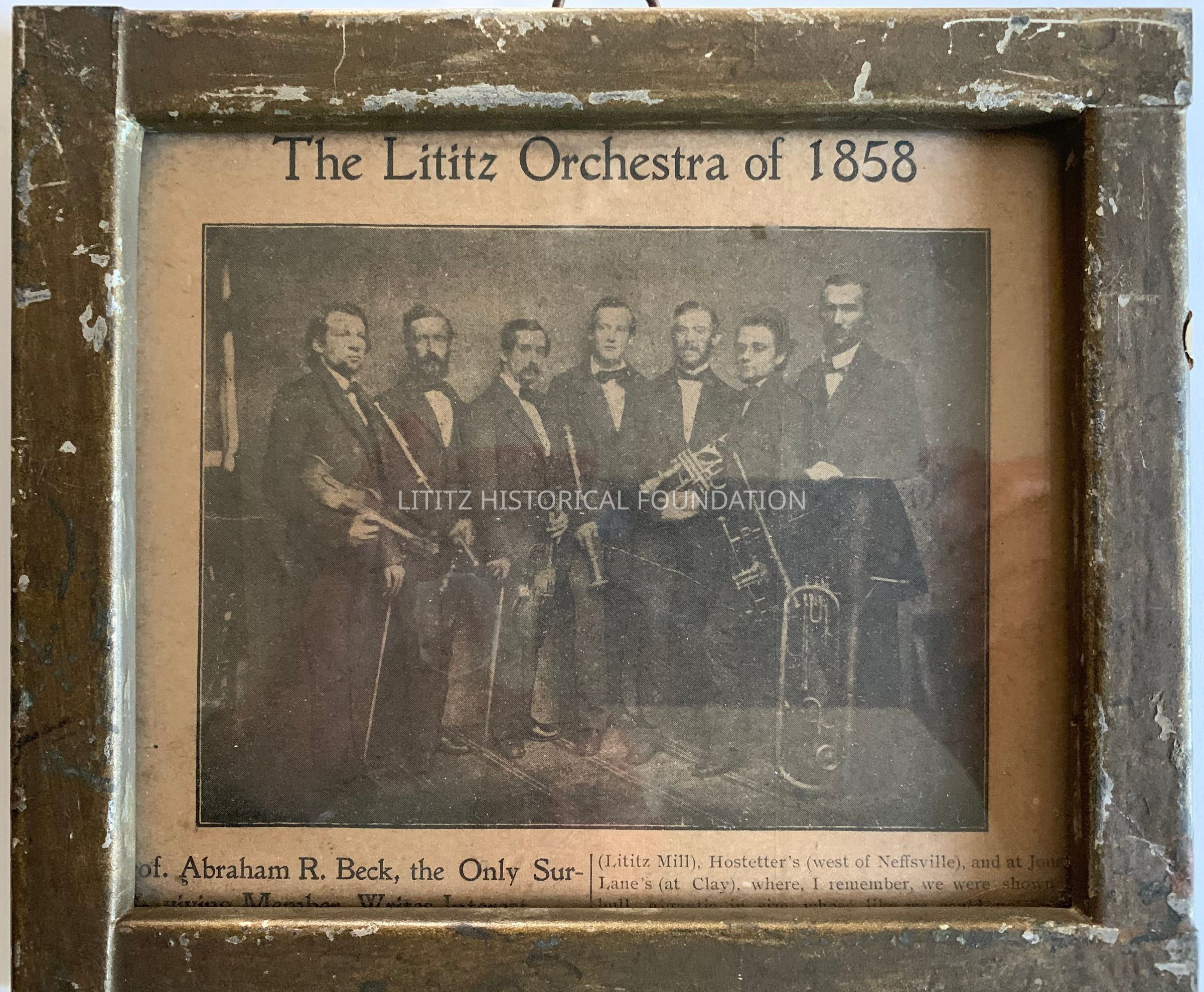 Framed photograph of the Lititz Orchestra 1858, from a newspaper clippingPhotograph Details