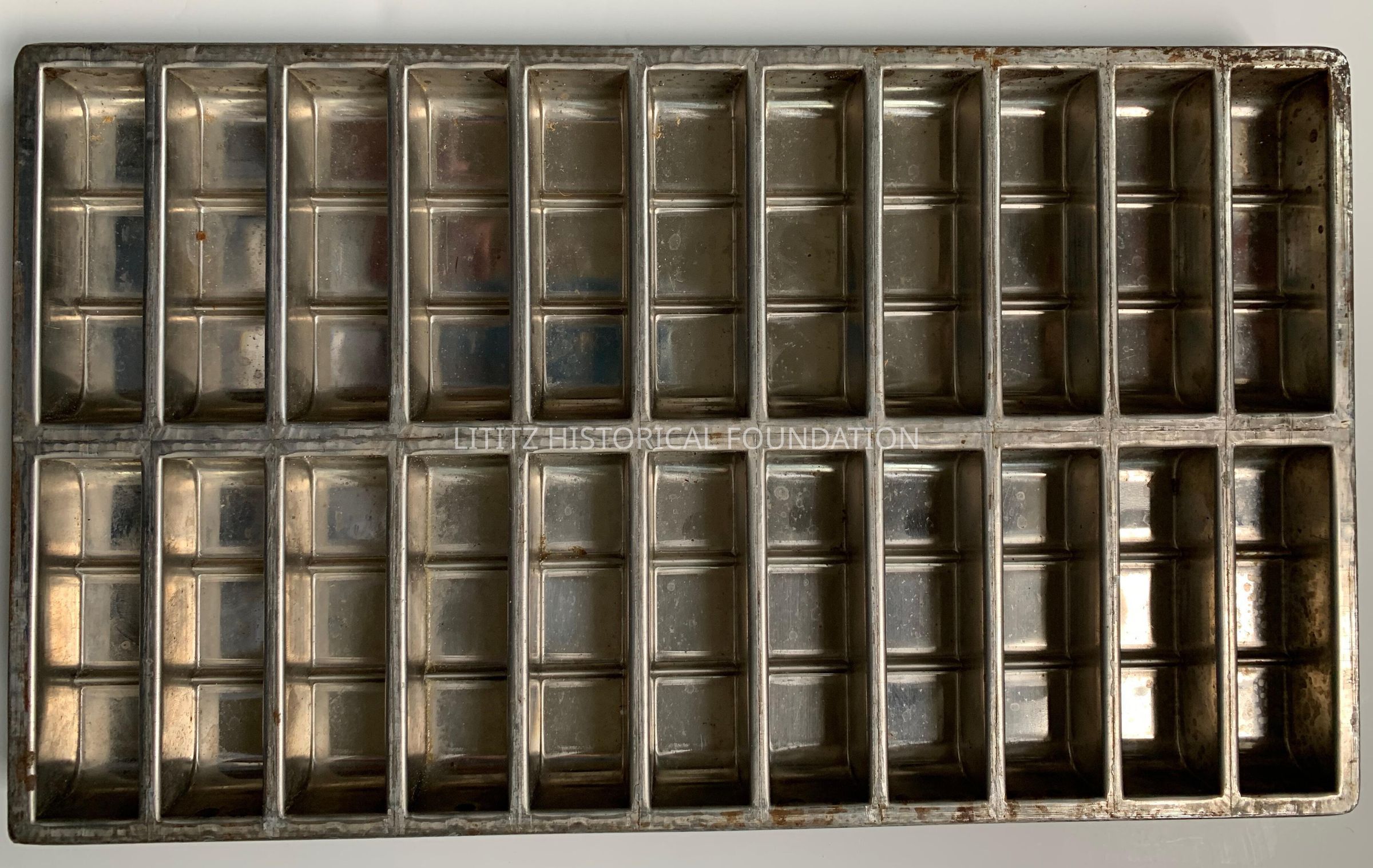 Mold used to make 22 candy bars which could be divided in thirds. Bars were about 2 oz.Collection