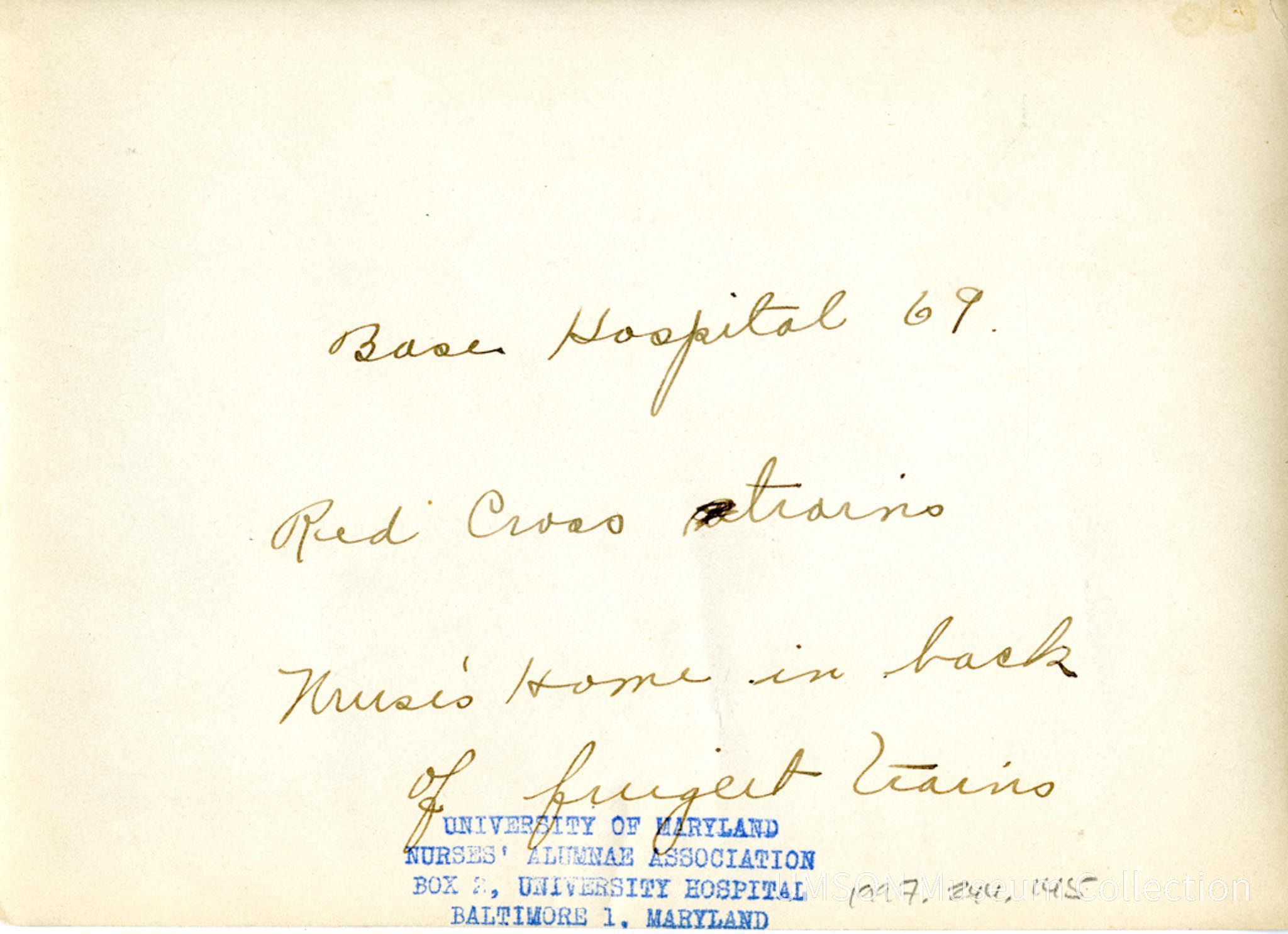 Base Hospital 69 Red Cross trains Nurses' Home in back of freight trainsLanguage