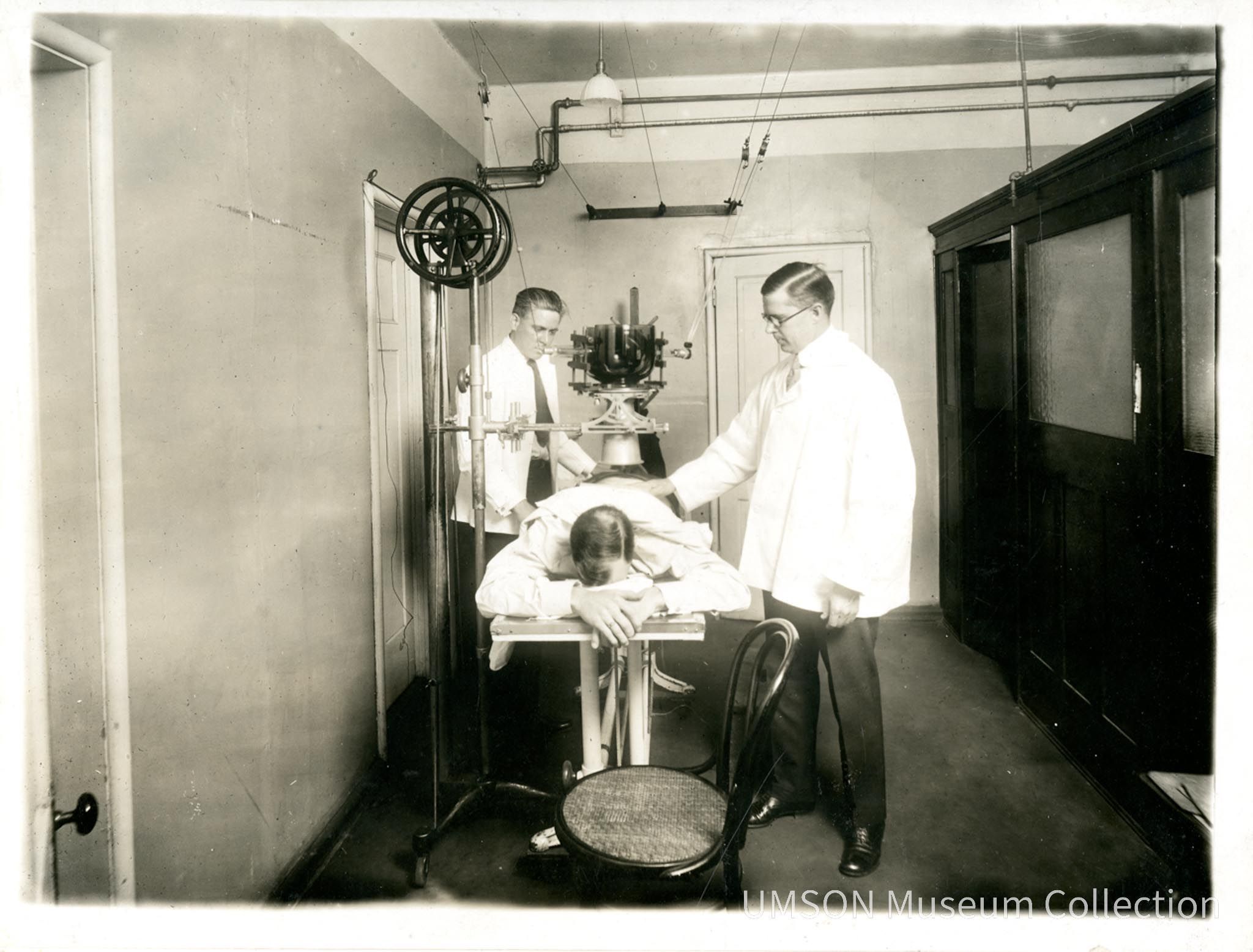 Dr. Comas and Dr. Watson with a Patient, University Hospital, Maryland, X-Ray Department, 1920Entry/Object ID