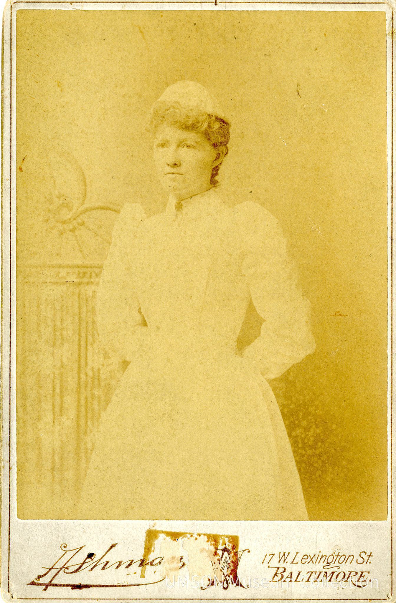 Photograph first belonged to Clara Mergardt, 1893. She inscribed her identification of the subject on the back of the photo: "First in Training school Miss Annie Lee My 1st Senior Nurse Womans ward 3 months 1890 MUH"Created By