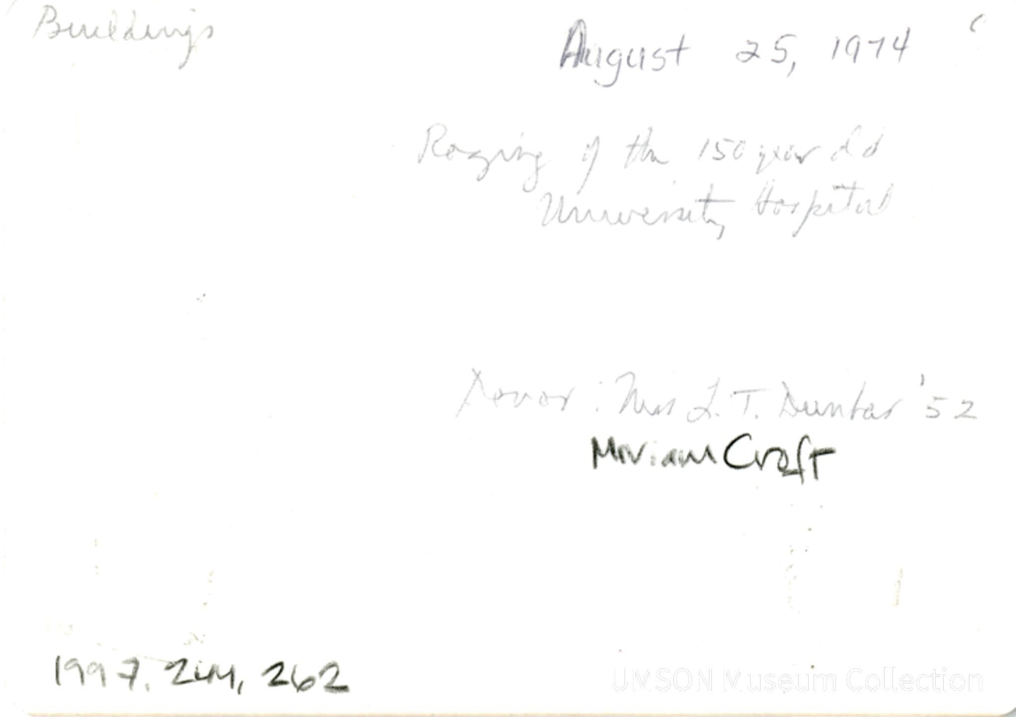 Razing of the150 year old University Hospital. August 25, 1975Language