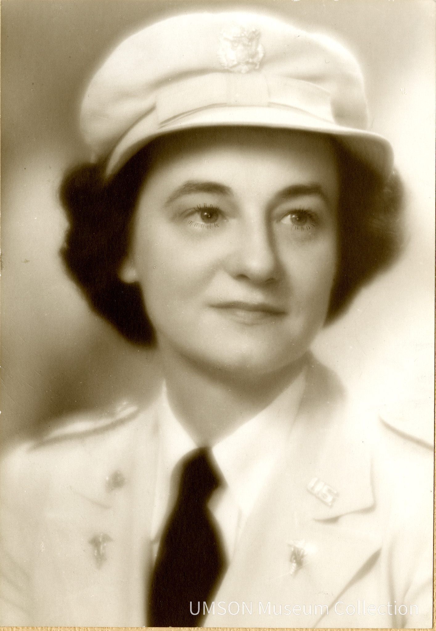 Anne Hoffman DIN 1928 shown in US Army Nurse uniform and cap. Hoffman served as a First Lieutenant from 1942-1948. Platinum toned print mounted on card stock.Acquisition