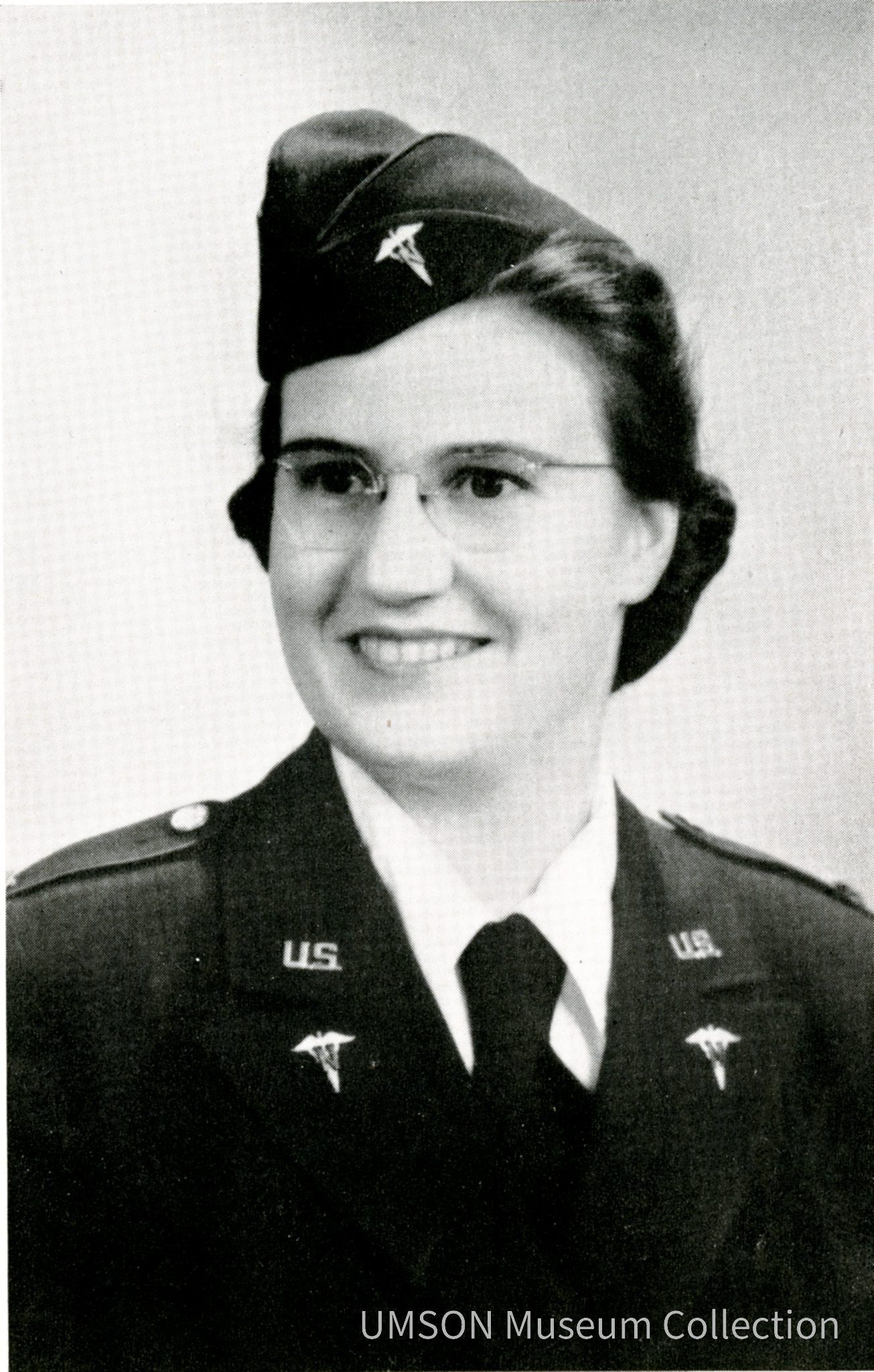 Lieutenant Louise M. Hollister, DIN 1939, halftone image in US Army uniform and cap. Lt. Hollister died August 31, 1943, General Hospital #142.Acquisition