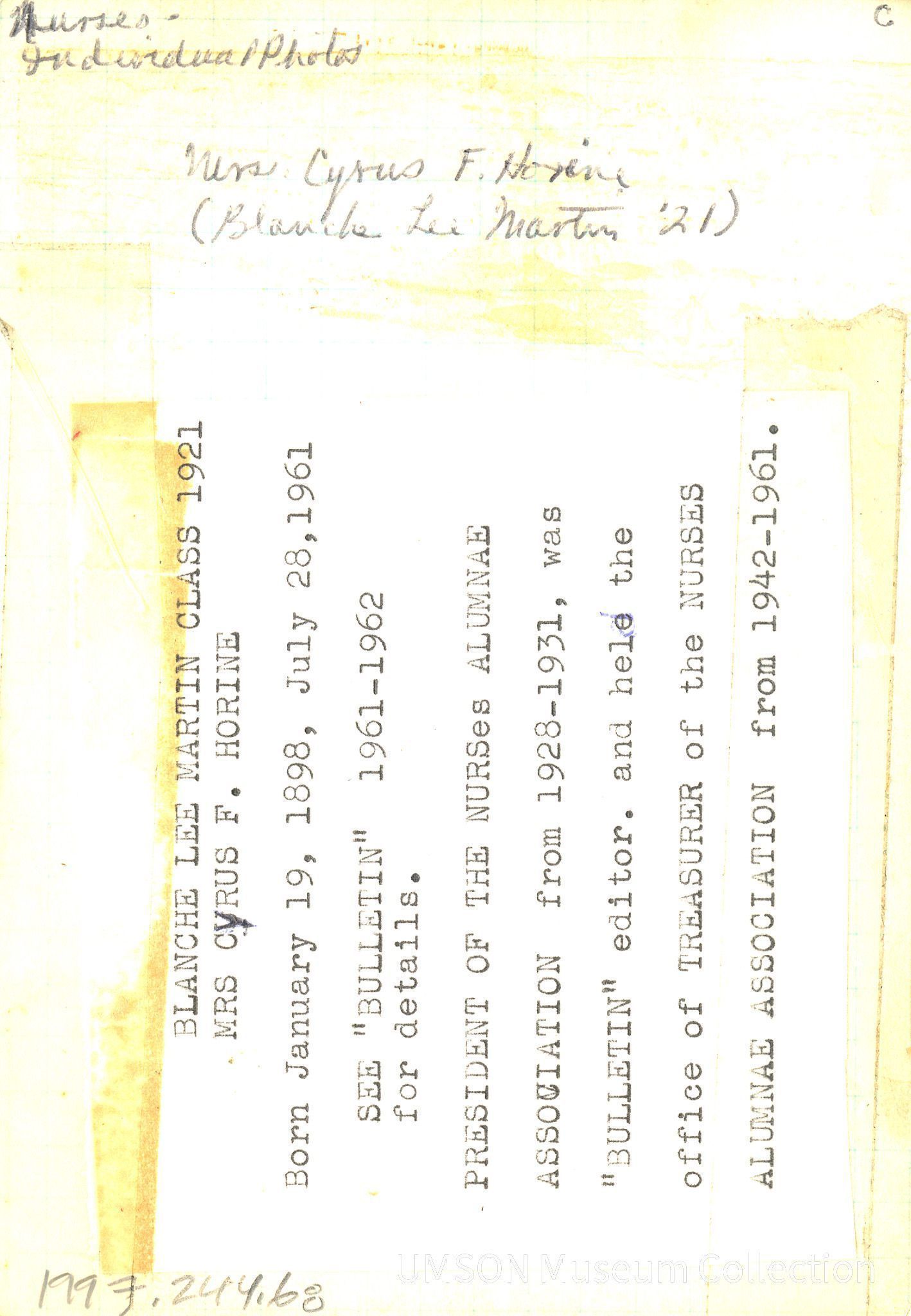 Martin, Blanche Lee (Mrs. Cyrus F. Horine)Entry/Object ID