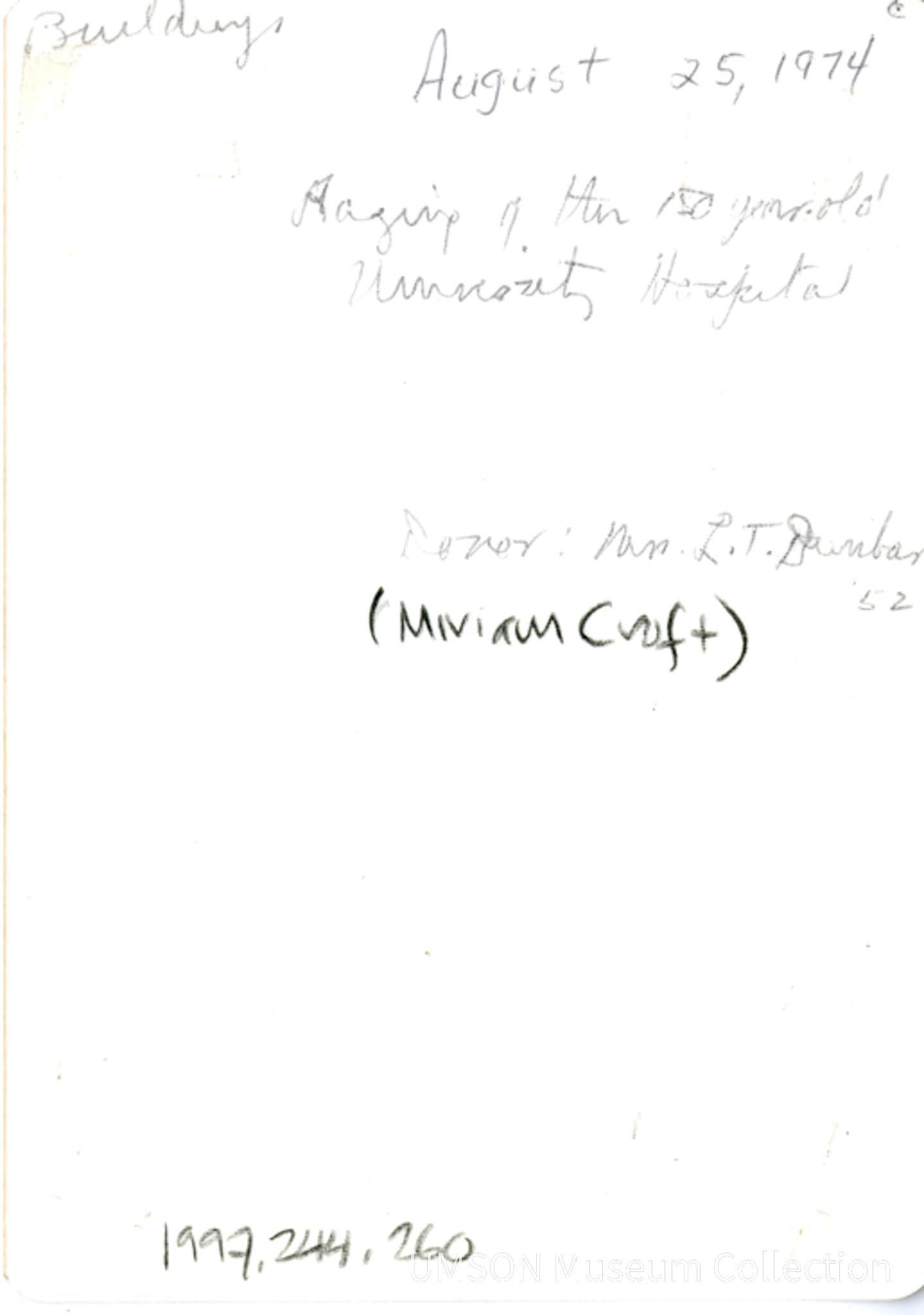Razing of the original University Hospital after 150 years August 25, 1975Language