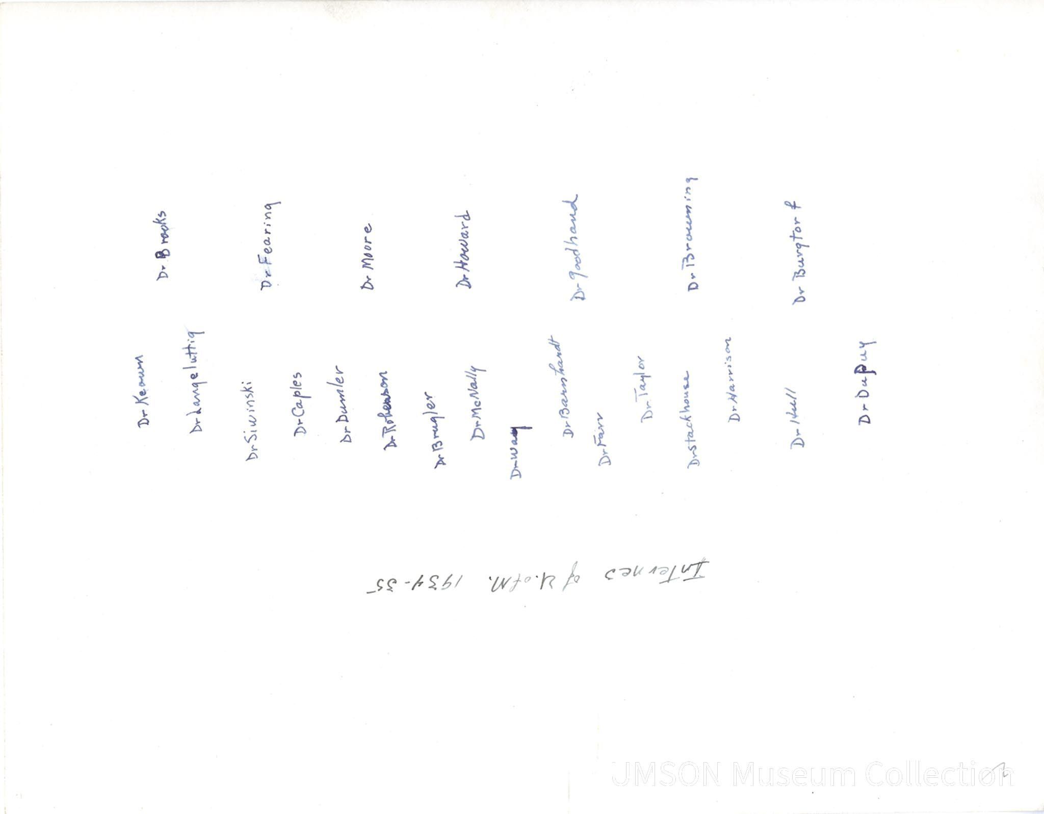 University of Maryland School of Medicine Interns, 1934-1935Entry/Object ID