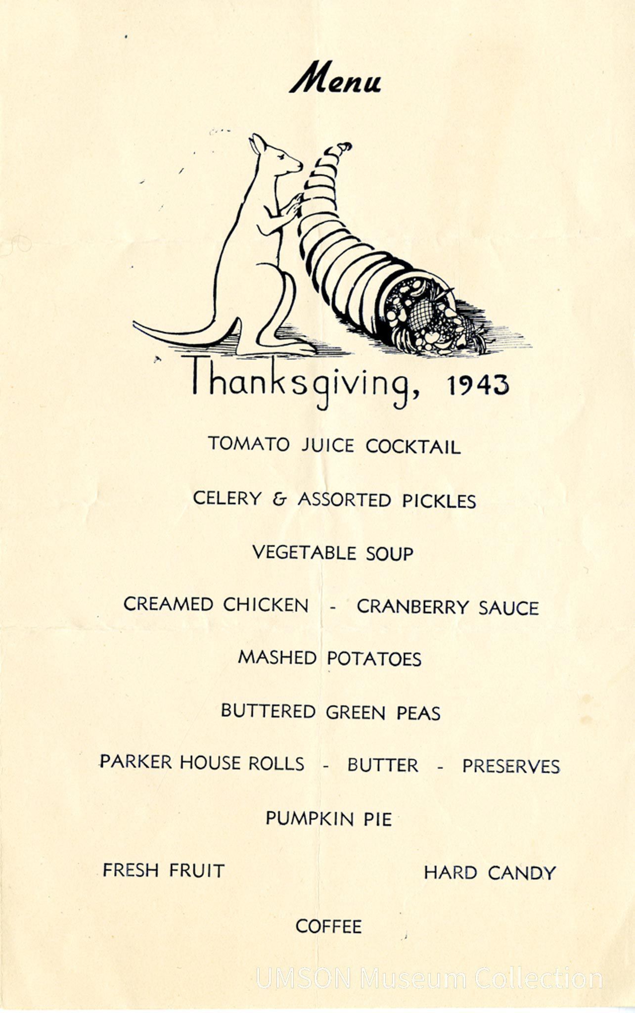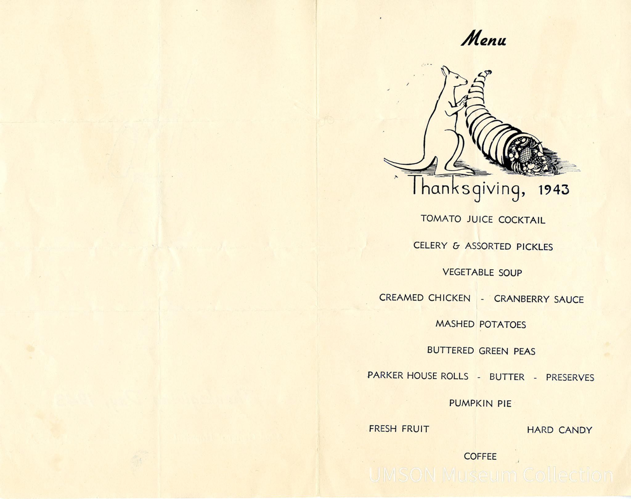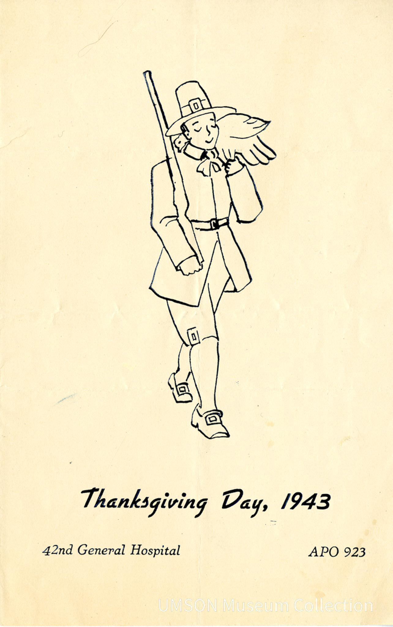 Bi-fold menu, Thanksgiving Dinner, 42nd General Hospital, 1943Collection