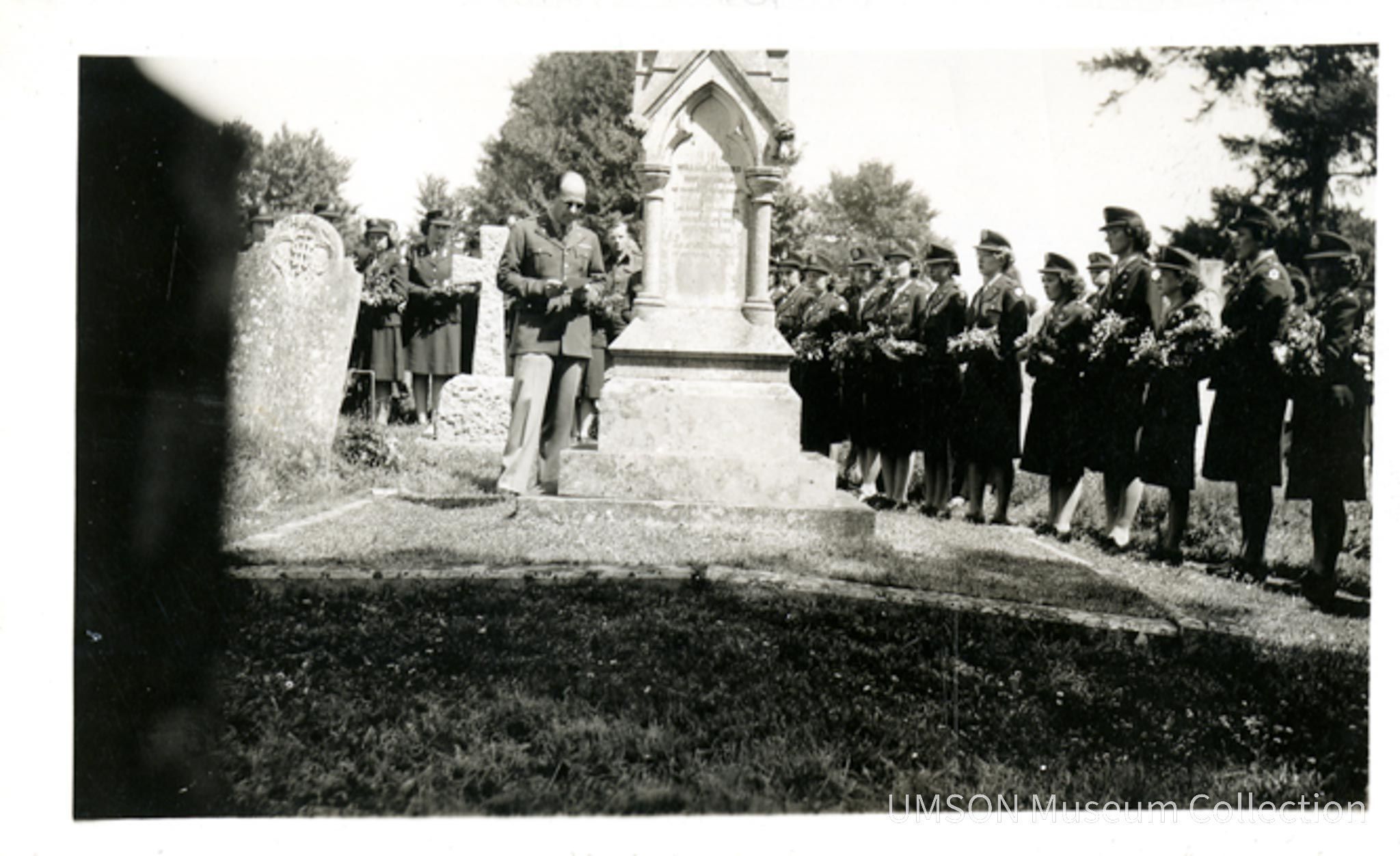 Colonel Leonard D. Heaton of Staunton, Virginia., commanding officer of the 802nd Hospital Center, with U.S. Army Nurses at the grave of Florence Nightingale on the 125th Anniversary of her birth, May 12, 1945Photograph Details