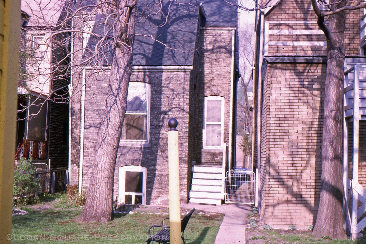 Color slide transparency photo of backyard and rear of house at 2322 N. Sawyer in spring, printed June 1969Photograph Details