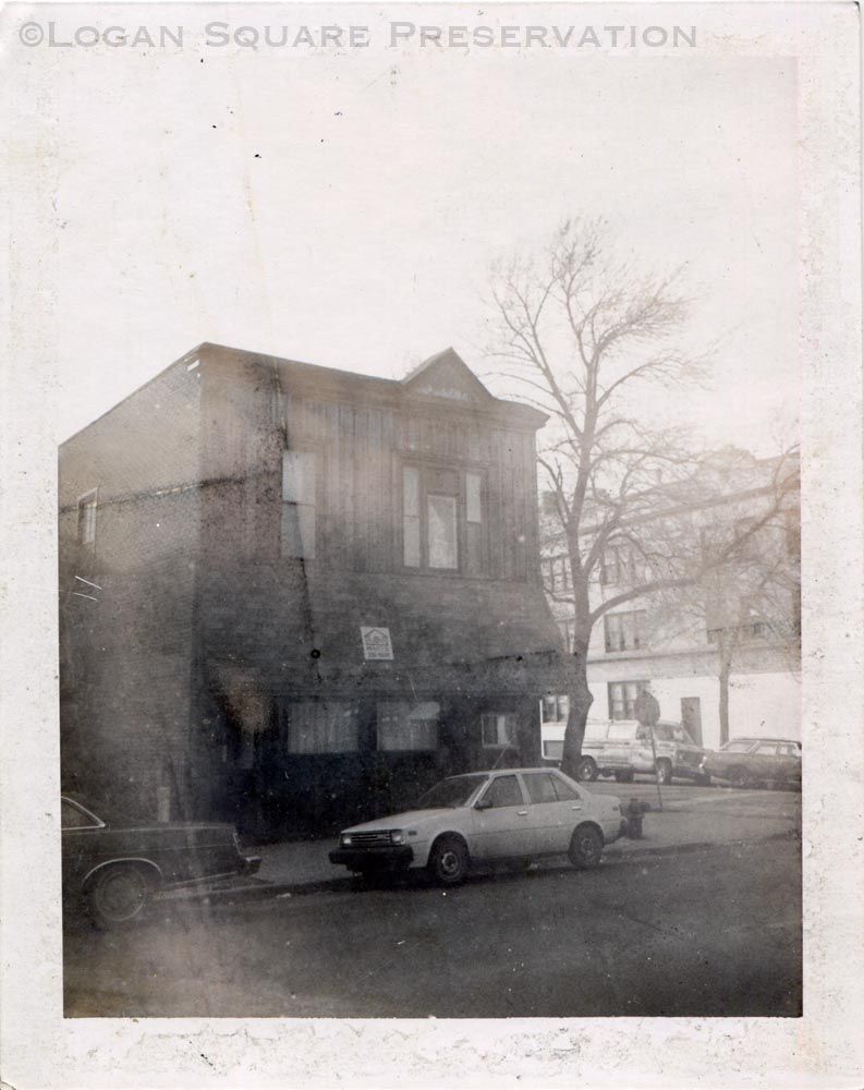 Polaroid instant photo looking northwest at 2456 N. California Ave corner storefront taken for Free Press real estate listing, circa 1980sPhotograph Details