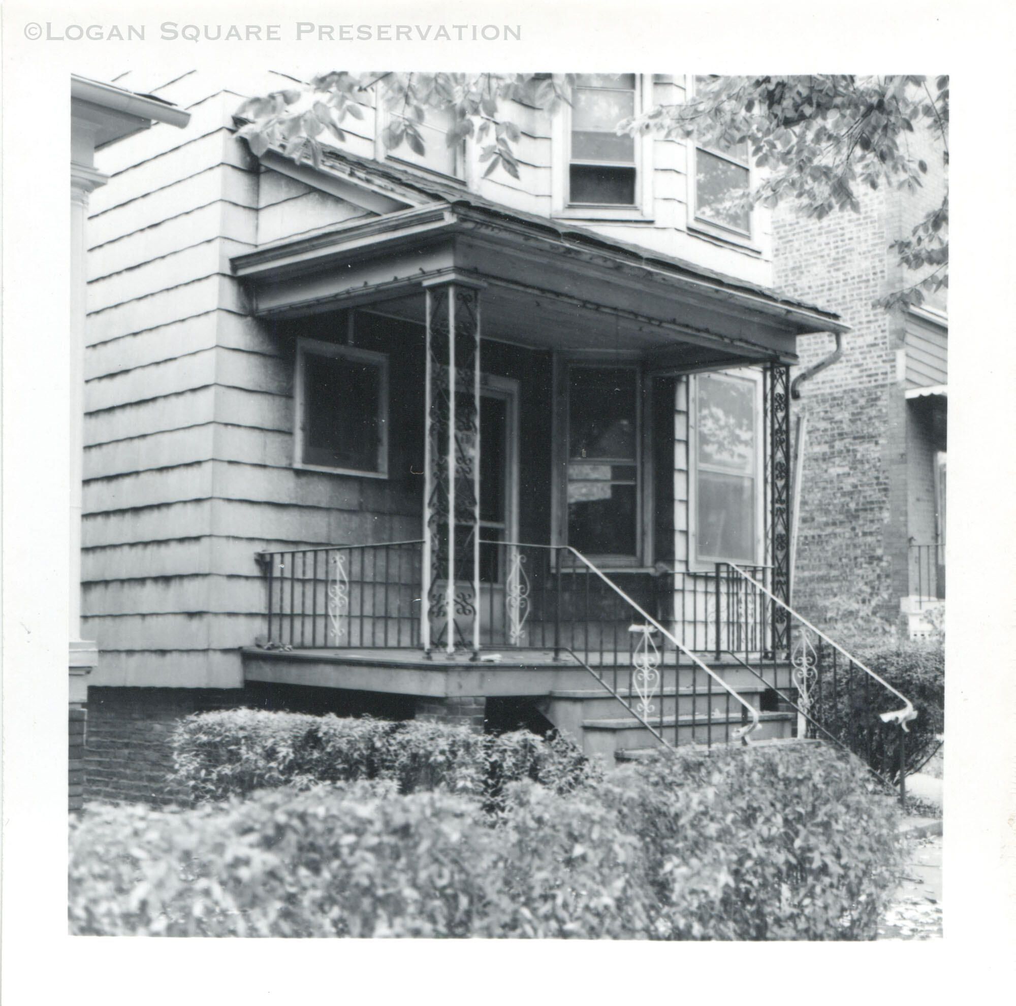 Photo view of wrought iron porch on front of 2505 N. Central Park Ave, circa 1974Photograph Details