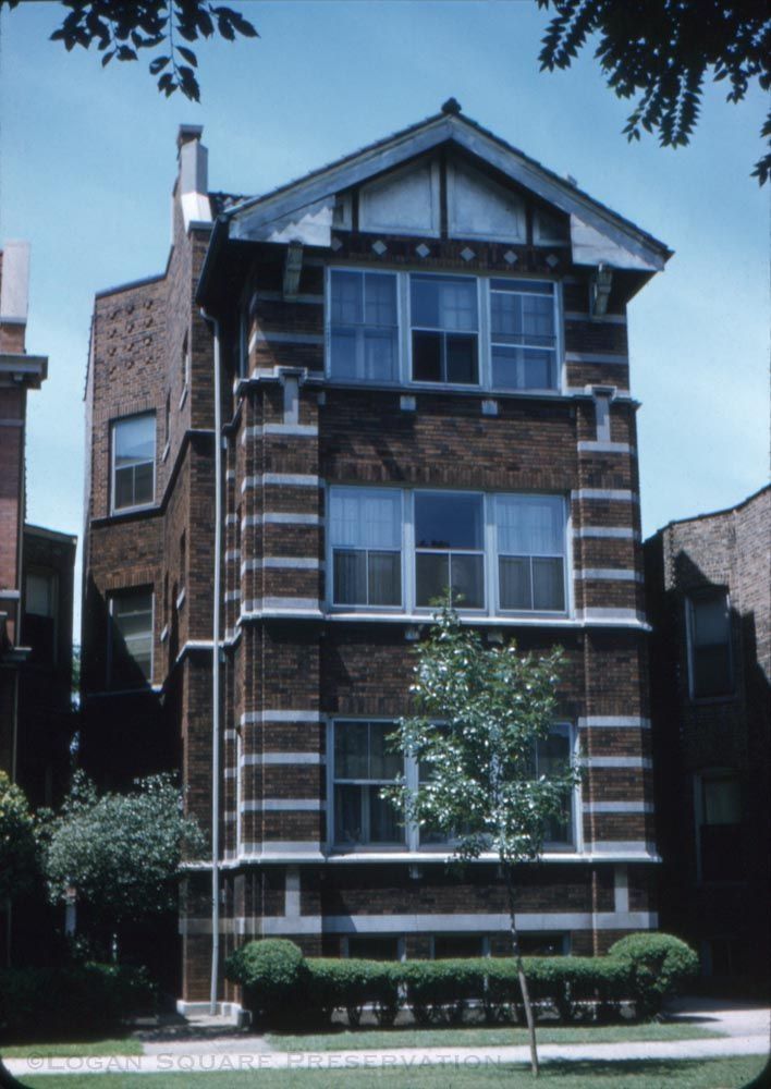 35mm color Kodachrome slide transparency view of brick three-flat at 2532 N. Richmond, circa August 1960Photograph Details