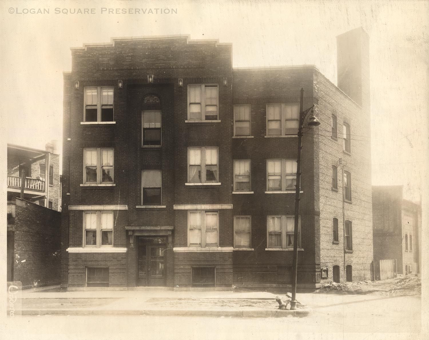 Professional photo of 3-story brick apartment building at 2645-2647 N. Sawyer Ave, circa 1927Photograph Details