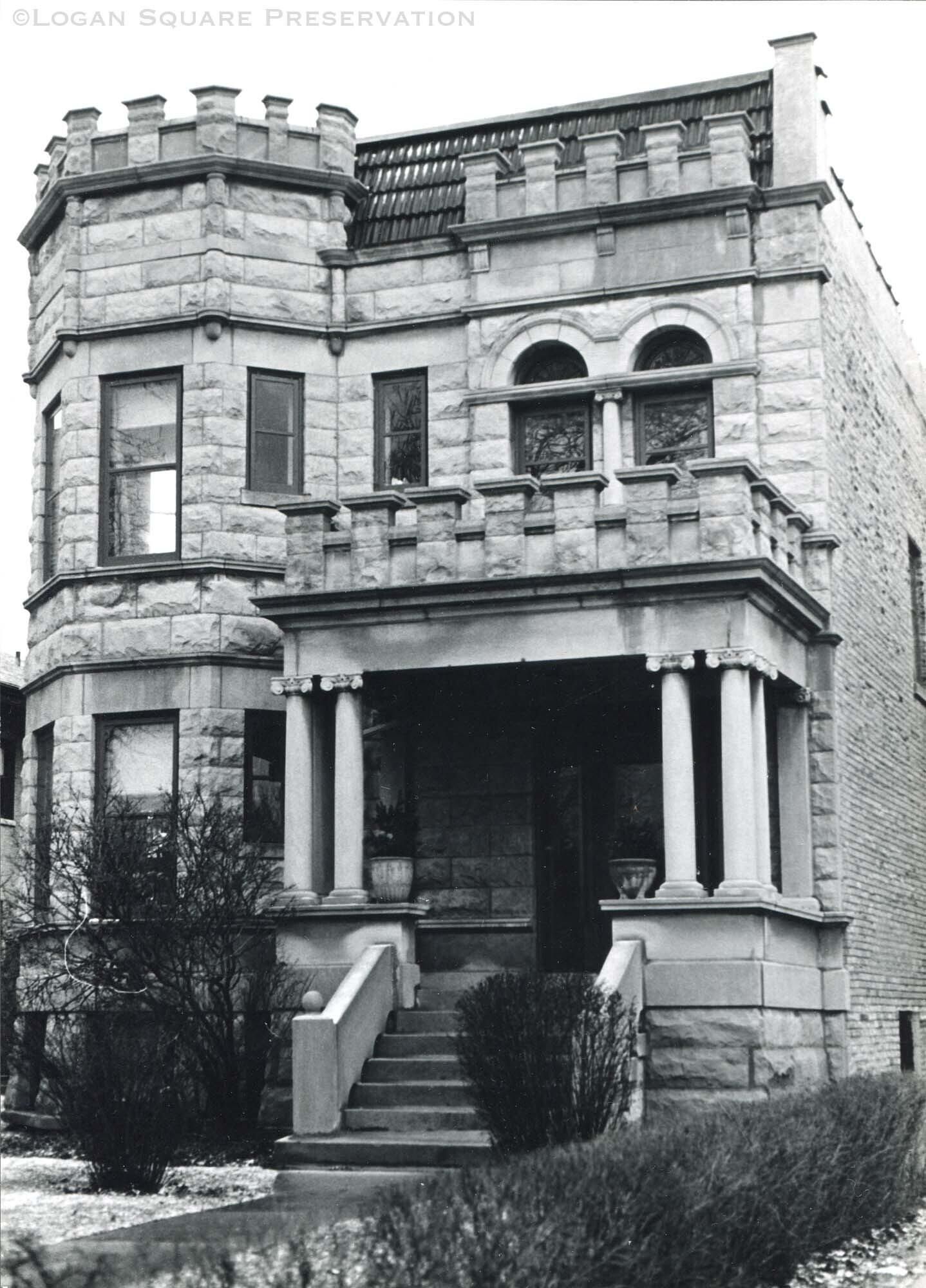 35mm b/w photo portrait of greystone mansion at 2711 W. Logan mounted on 11x13 illustration board, dated 3/79Photograph Details