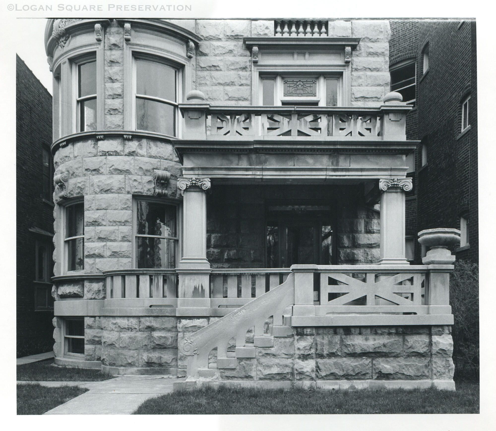11 x 14 print of large-format view of front stairs and entry at 2819 West Logan. Photo taken for Logan Square Preservation, circa 1981Photograph Details