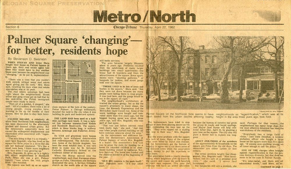 Newspaper clipping of article about gentrification in Palmer Square, April 1982Collection