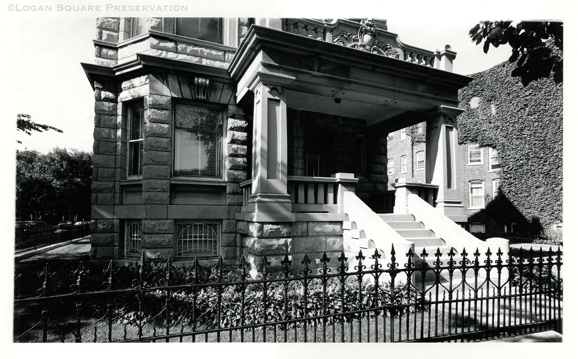 11 x 14 print of large-format view of front stairs and entry of 3024 W. Logan. Photo taken for Logan Square Preservation, circa 1980-81Photograph Details