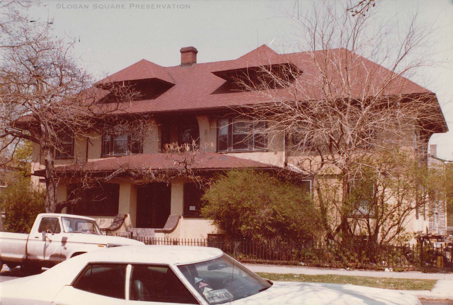 Snapshot photo of house at 3230 W. Belden with cars parked in front, May 3, 1982Photograph Details