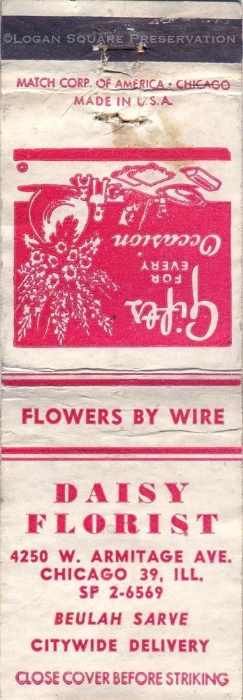 1.5" matchbook printed in red ink on white paper with stock illustration of flowers and gifts on back, circa 1930s-1940sPublication Details