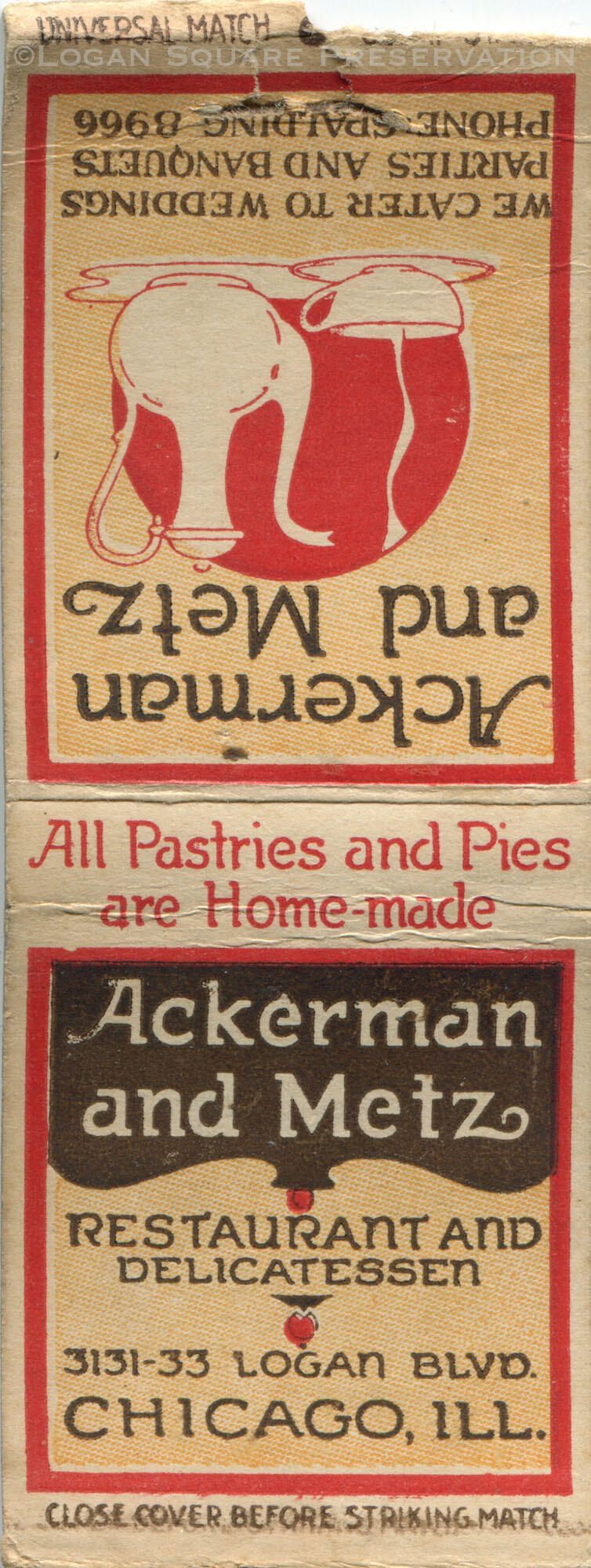 Ackerman and Metz Restaurant matchbook coverEntry/Object ID