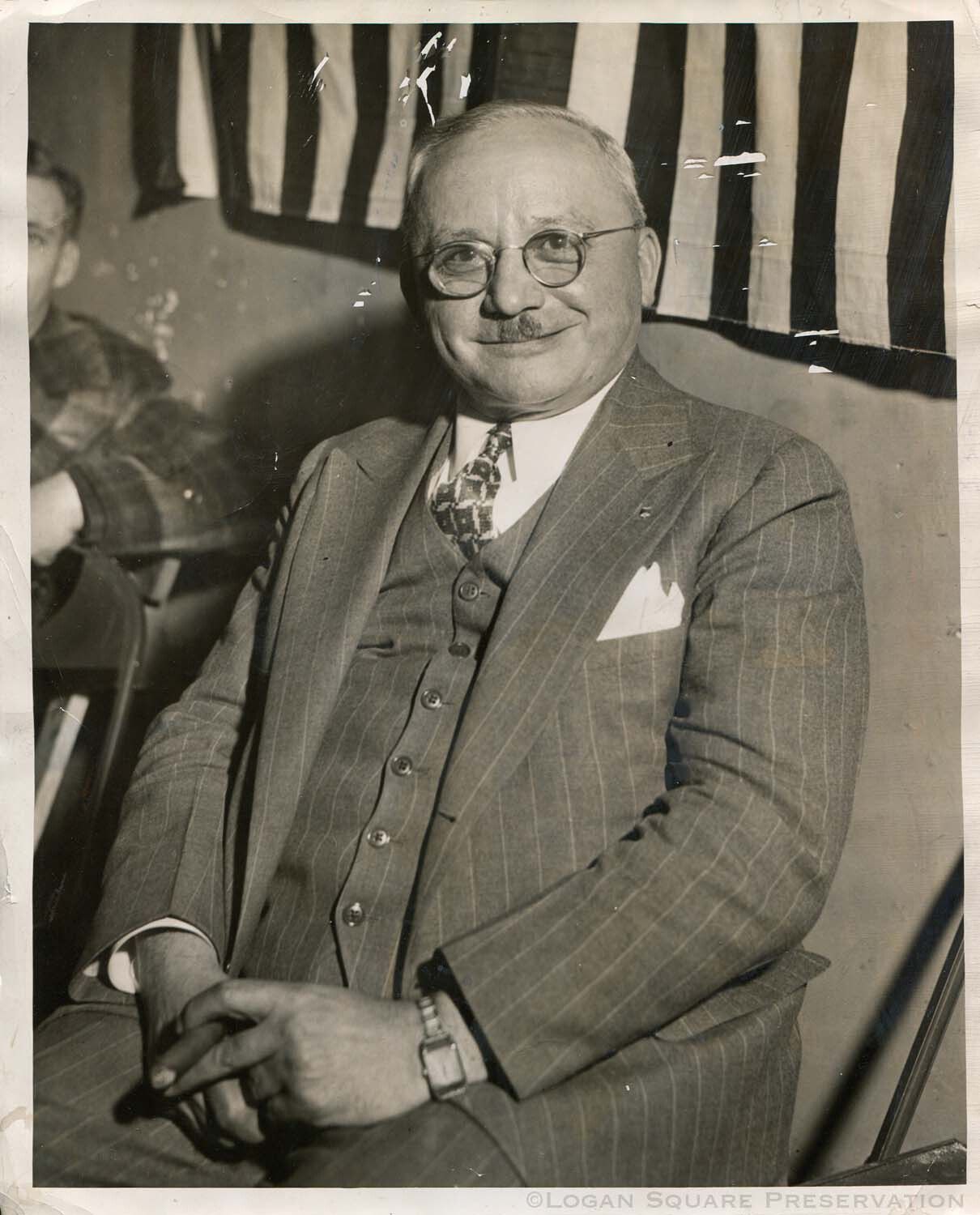 News photo portrait of recently-elected 33rd Ward alderman Vincent S. Zwiefka sitting on folding chair holding cigar, 1939Photograph Details