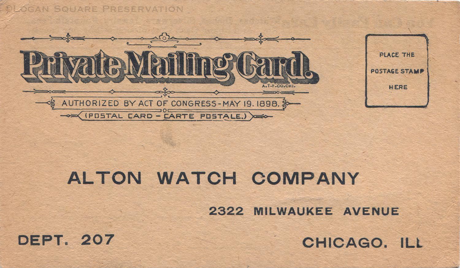 Alton Watch Company Mailing CardEntry/Object ID