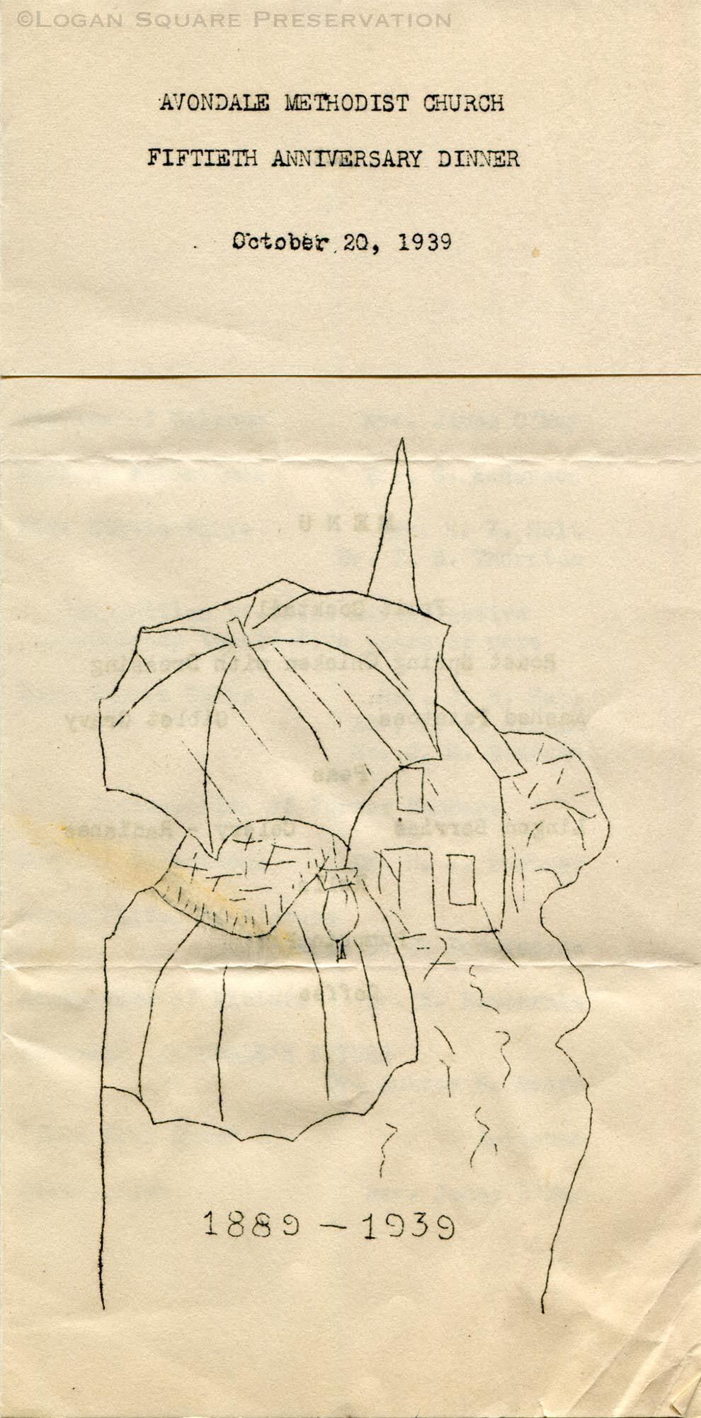 4-panel mimeographed folded menu for Oct 20, 1939 dinner celebrating 50th anniversary of founding of Avondale Methodist Church with speech by Dr. Aubrey S. MoorePublication Details