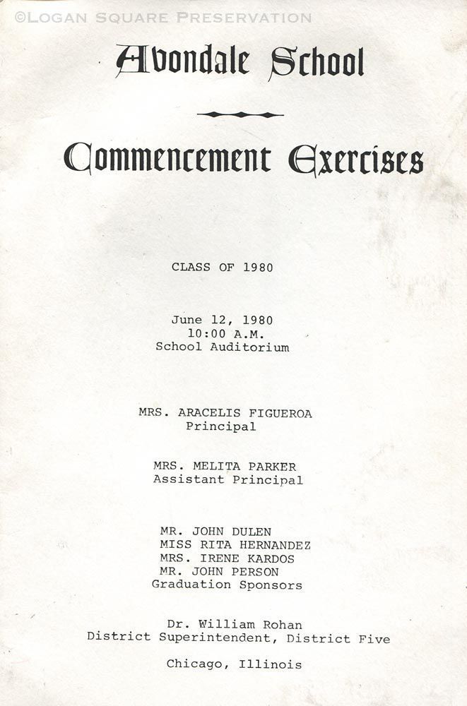 4-panel program for Avondale School commencement ceremony lists 8th-grade graduates, June 12, 1980Publication Details